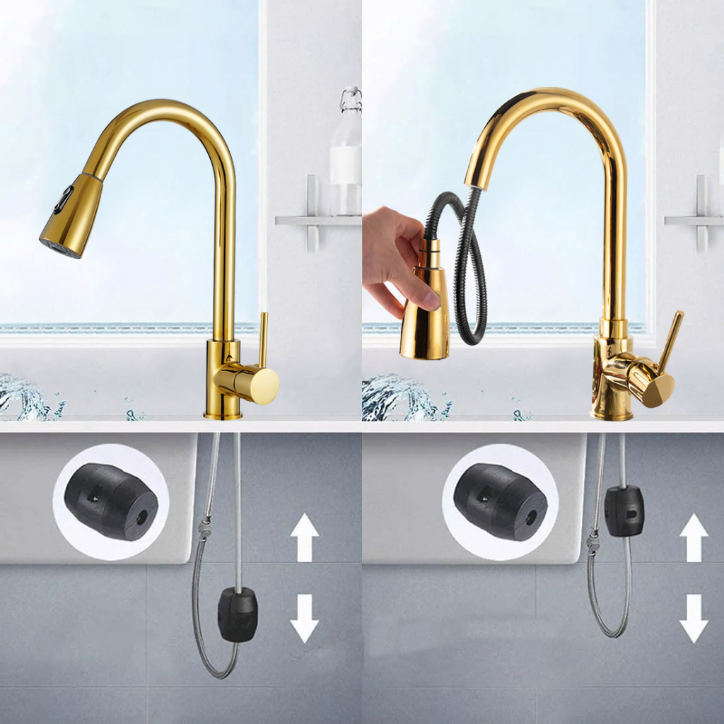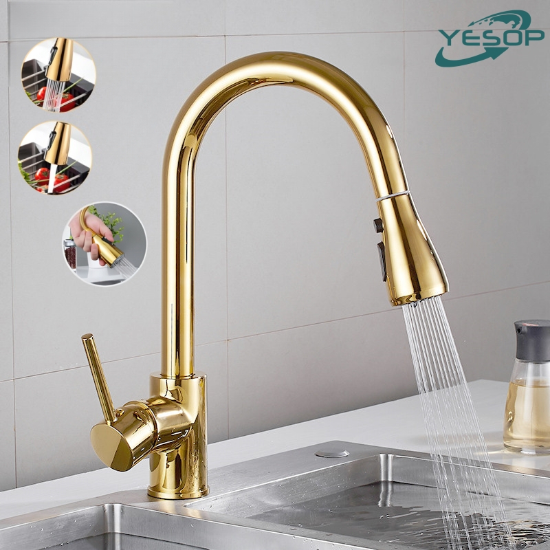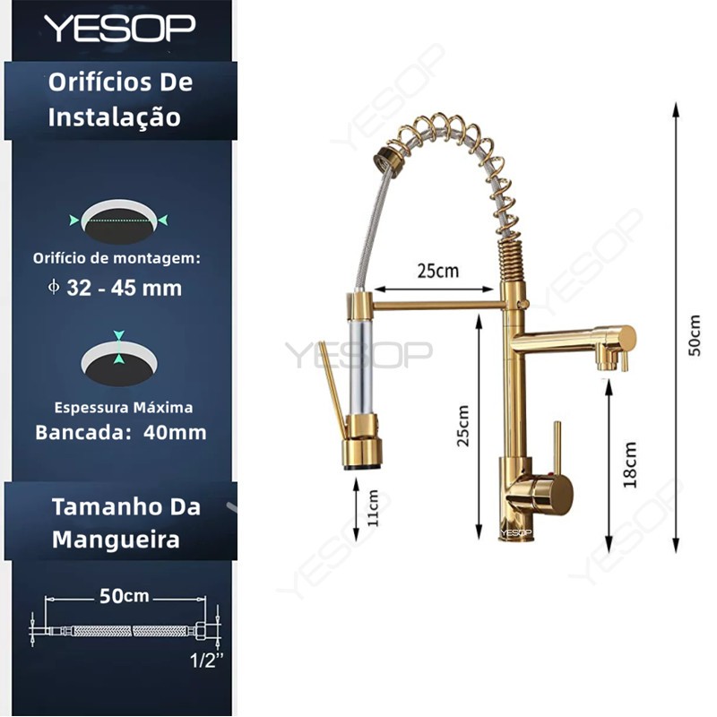 Torneira Cozinha Torneira Gourmet Misturador Monocomando Quente E Frio Extensível Dourado Acabamento Brilhando Yesop