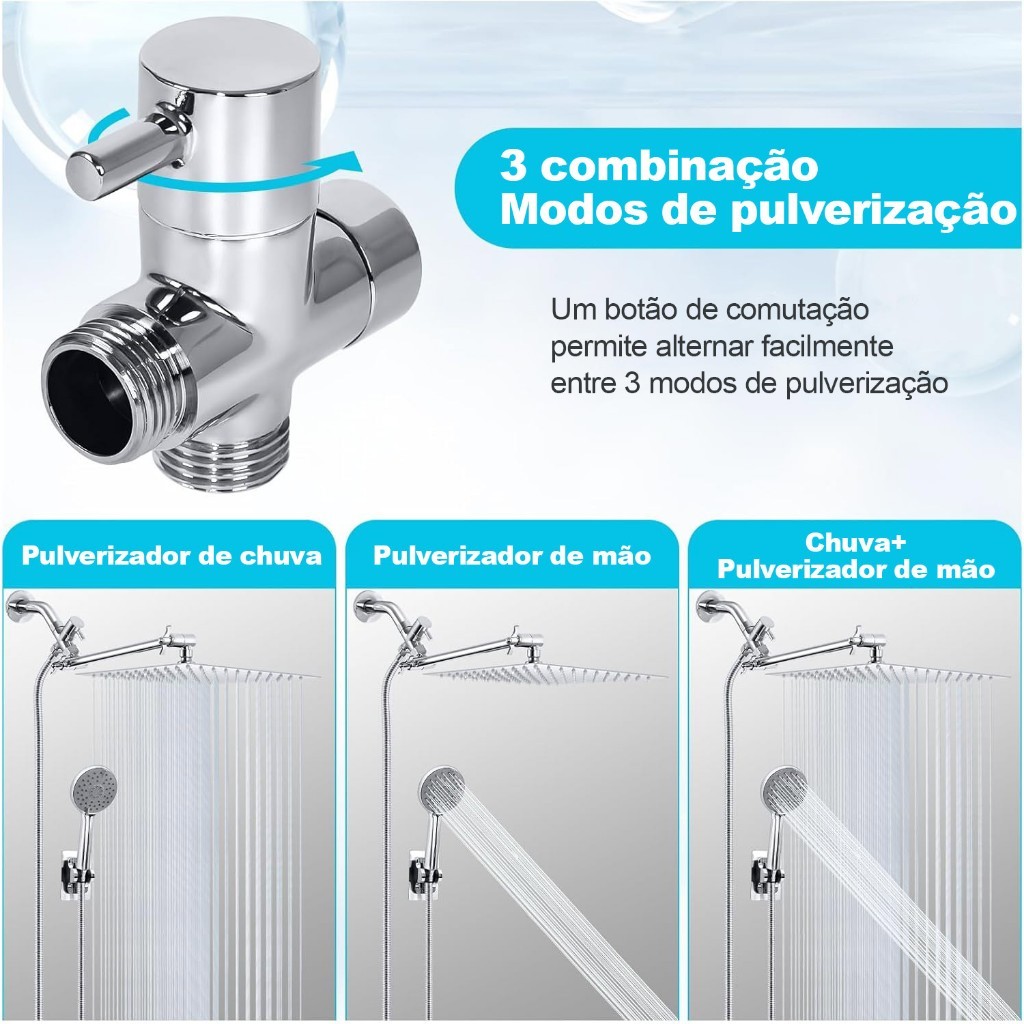 YESOP Chuveiro Ducha Quadrada 25x25cm Inox com Chuveirinho e Desviador Luxo Não Elétrico Aquecedor