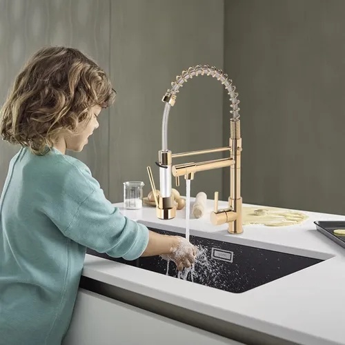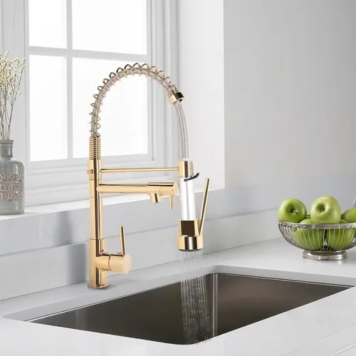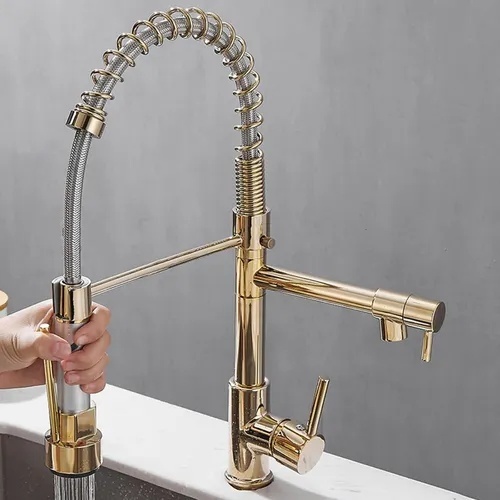 Torneira Cozinha Dourada Pia Gourmet Misturador Inox Luxo Acabamento Brilhante Yesop