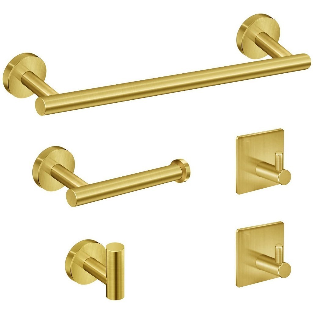 Kit Acessórios Banheiro Cabide Toalheiros Papeleira 5 Peças Aço Inox Escovada Yesop