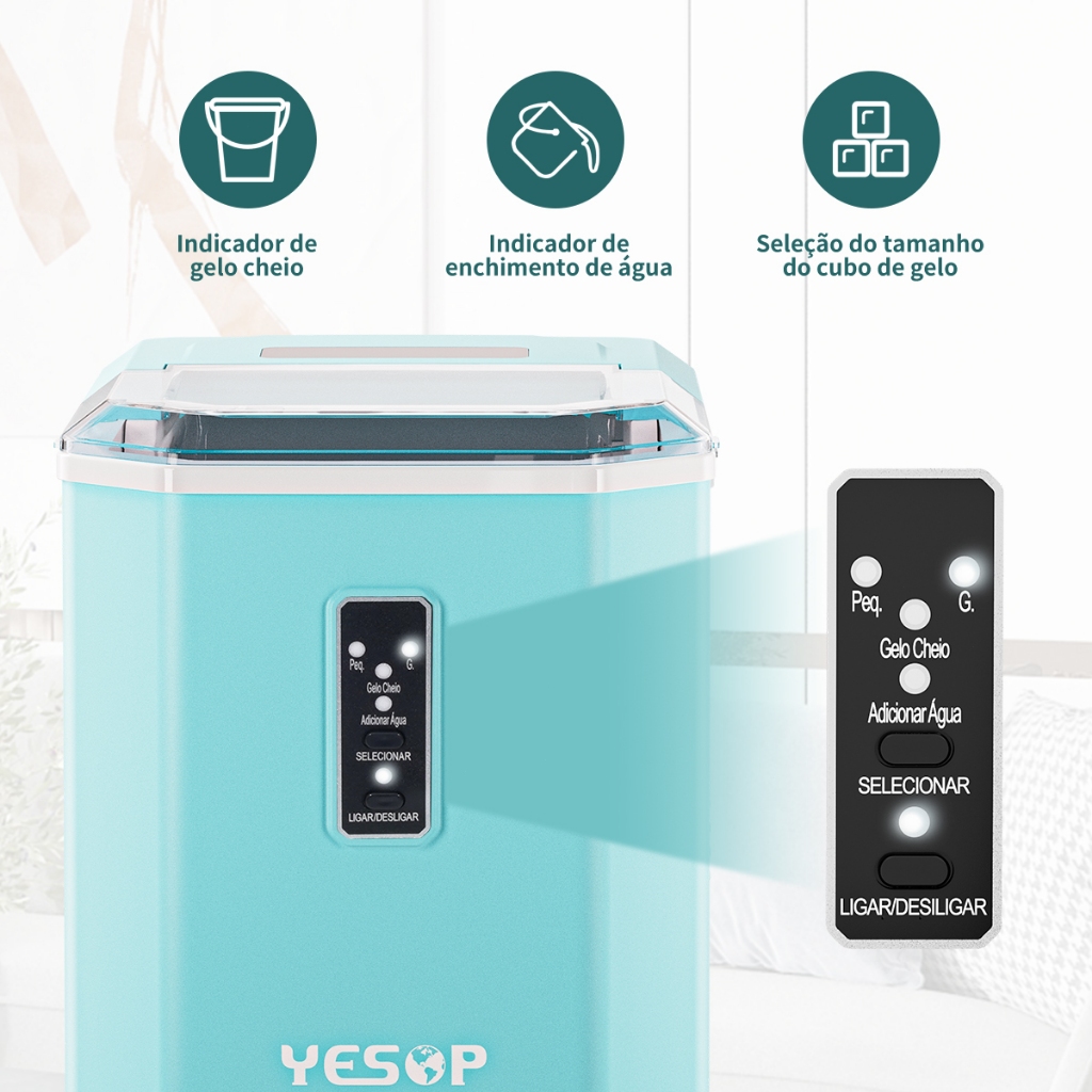 YESOP Máquina De Gelo Turbo Ice Premium 120W Portátil 110V/127V Profissional Automático Azul