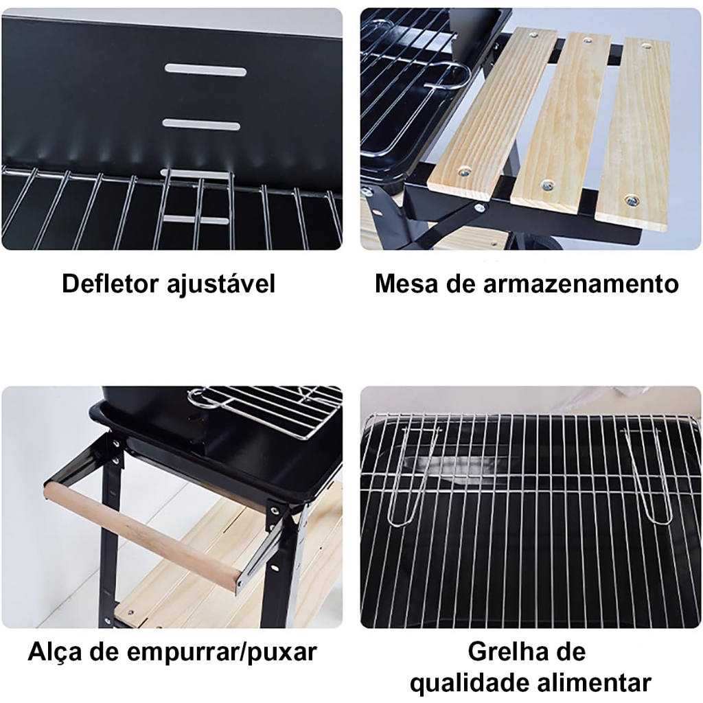 YESOP Churrasqueira a Carvão Portátil Para Terraço Externo 50x30cm Carrinho Churrasco Y-805