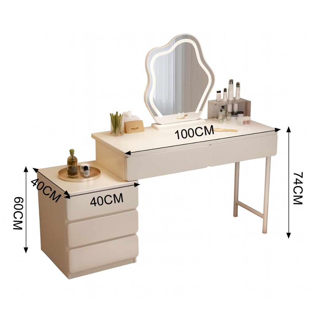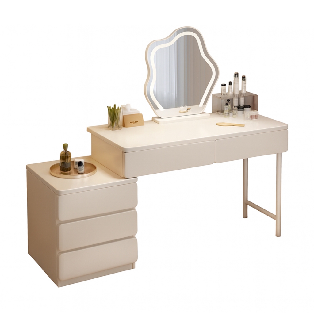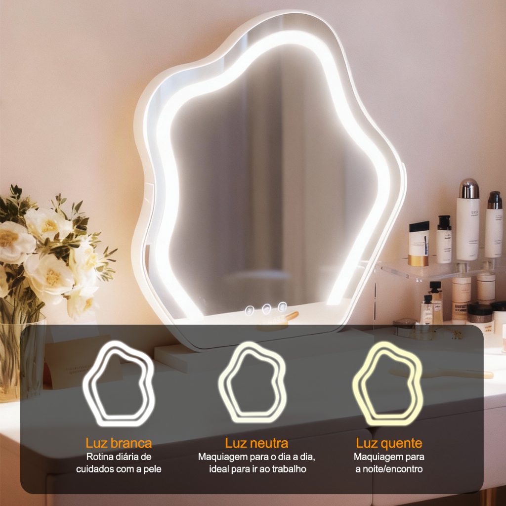 Penteadeira com Espelho LED Multifuncional com Criado-Mudo e 5 Gavetas