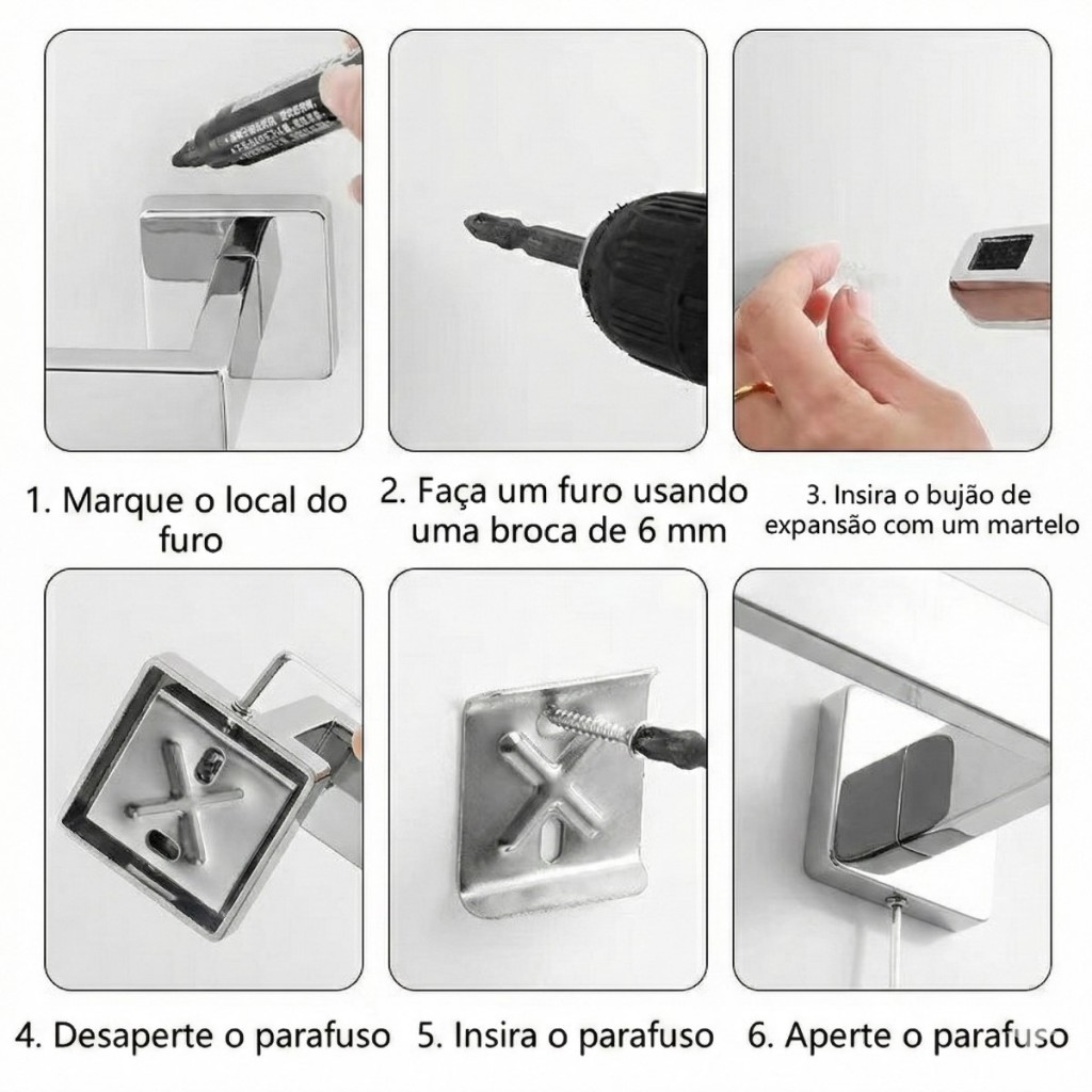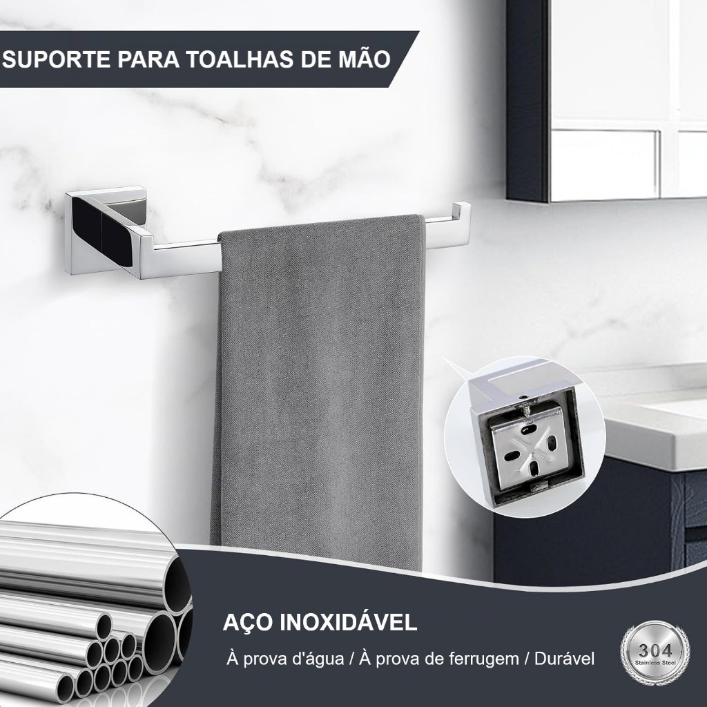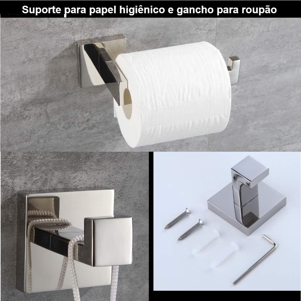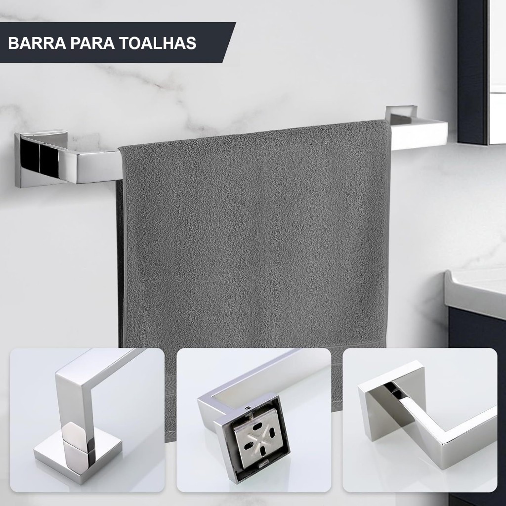 YESOP Kit Acessórios Banheiro 4 Peças Inox Quadrado Toalheiro 60cm Luxo Antiferrugem