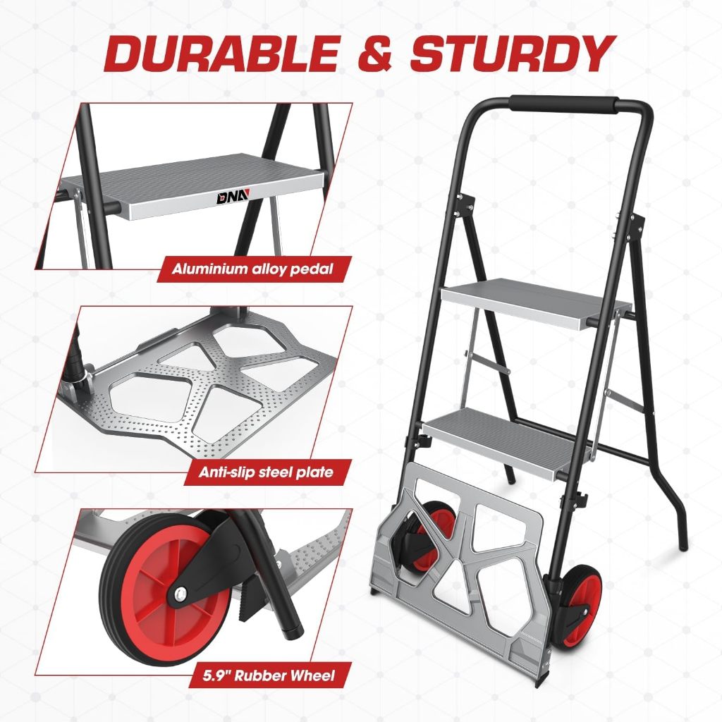 scada de Alumínio 2 em 1 e Carrinho de Carga Dobrável Multifuncional Suporta até 250KG Reforçada Yesop