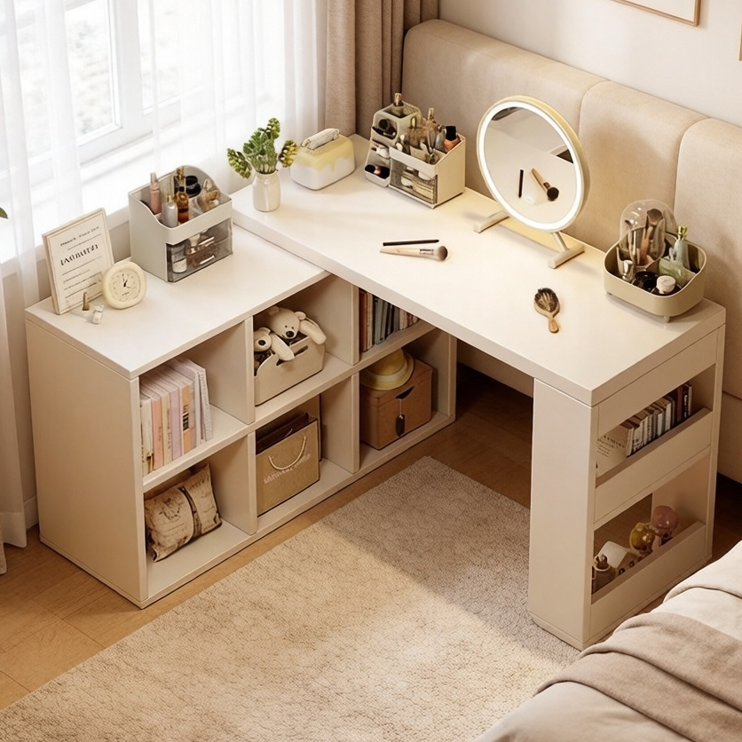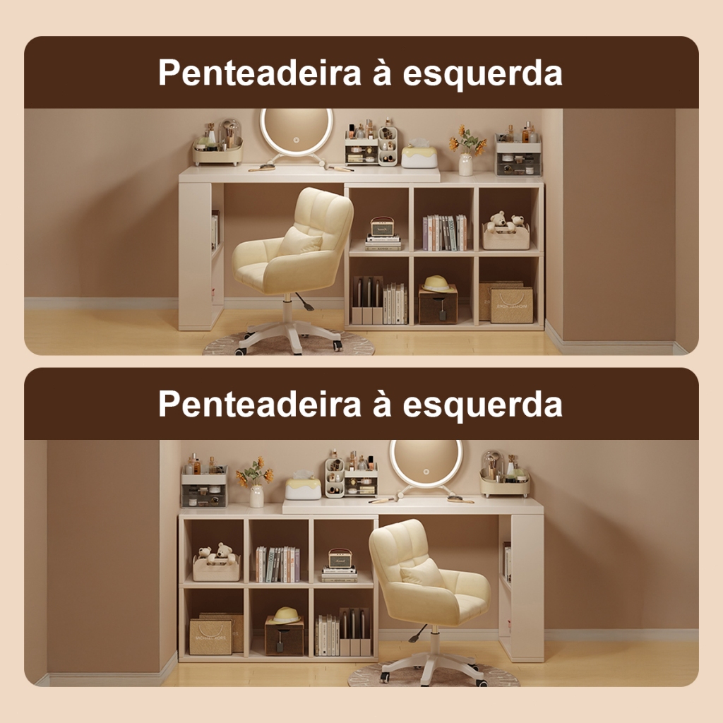 Penteadeira de canto Escrivaninha em L ou Reta multifuncional branca adequada para quarto e escritório Yesop