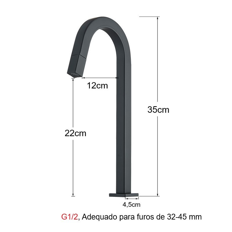 YESOP Torneira Banheiro Inox 35cm Alta Preto Fosco Para Cuba Apoio Lavatório Moderna Água Fria
