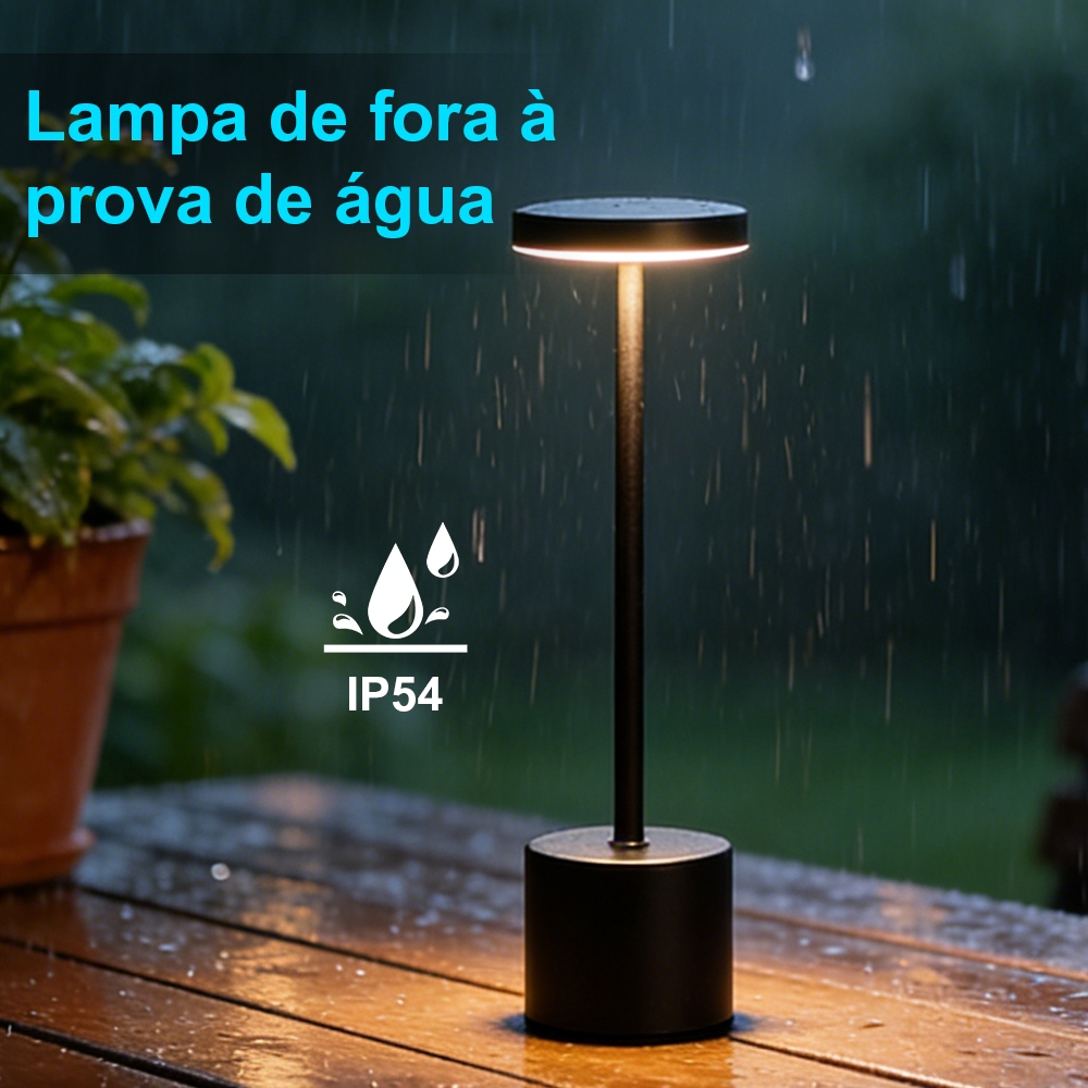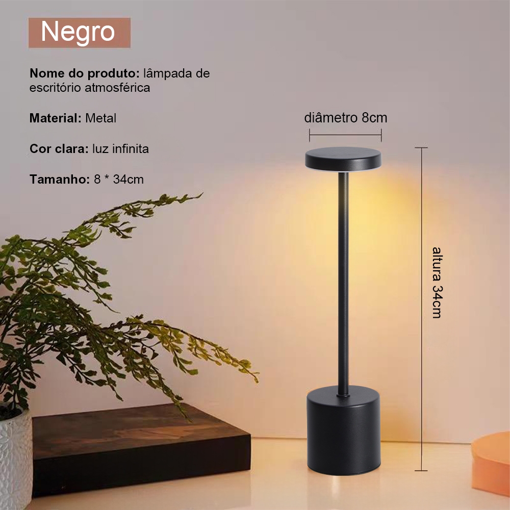 Luminária Mesa Abajur Led Dimerizável Sem Fio Recarregável Quarto Luxuosa 3 Tons de Led Yesop