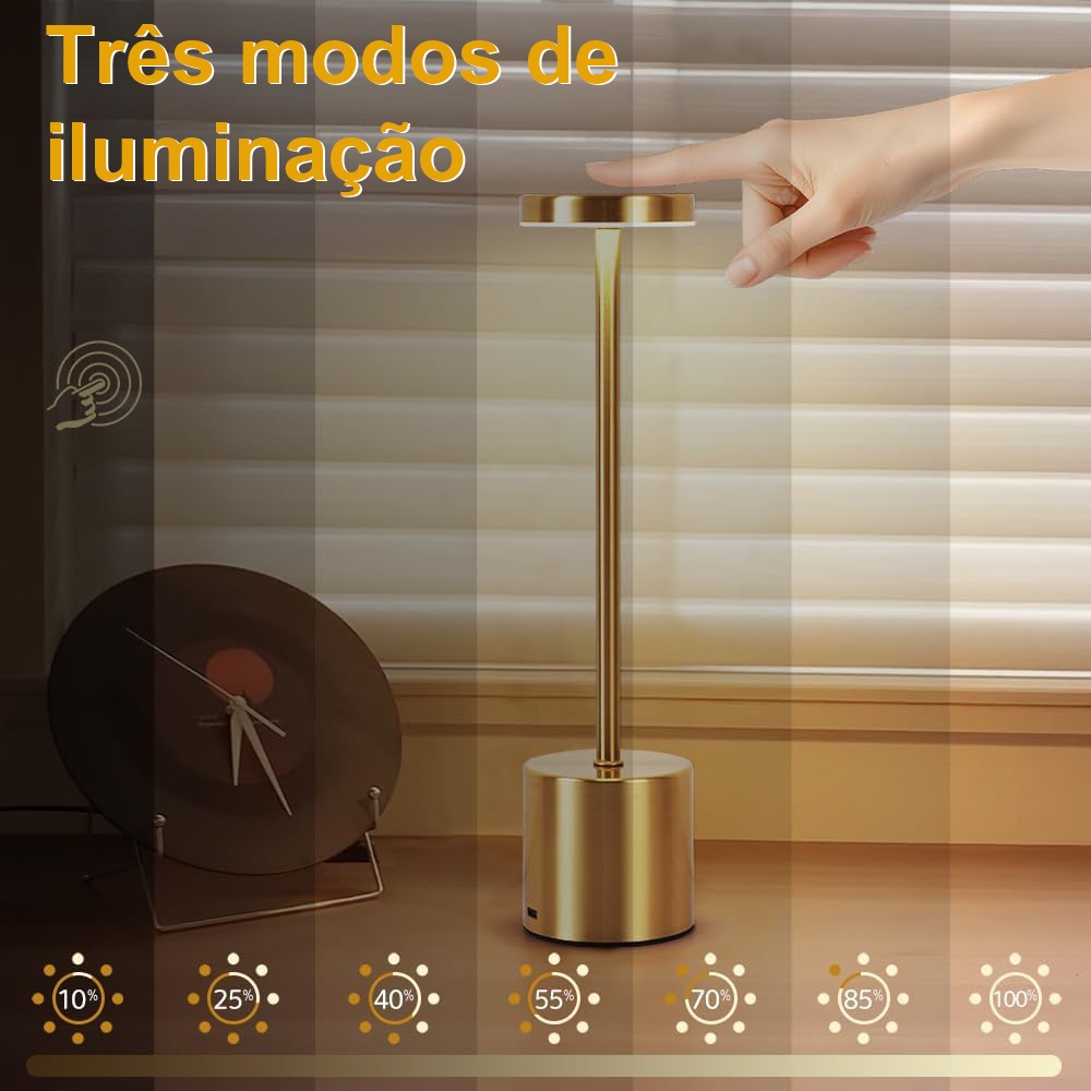 Luminária Abajur de Mesa Candeiro Dumbbell Touch de Quarto Luxuosa 3 Tons de Led Yesop