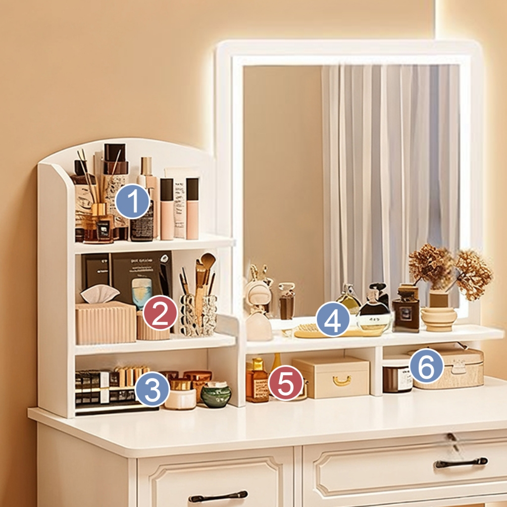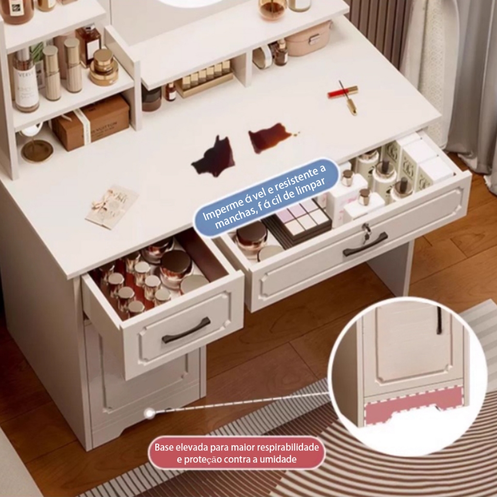 Penteadeira De Quarto Com Luminária E Quadrado Espelho Brilho Ajustável Yesop Branco Com 2 Gavetas 1 Portas E Prateleira