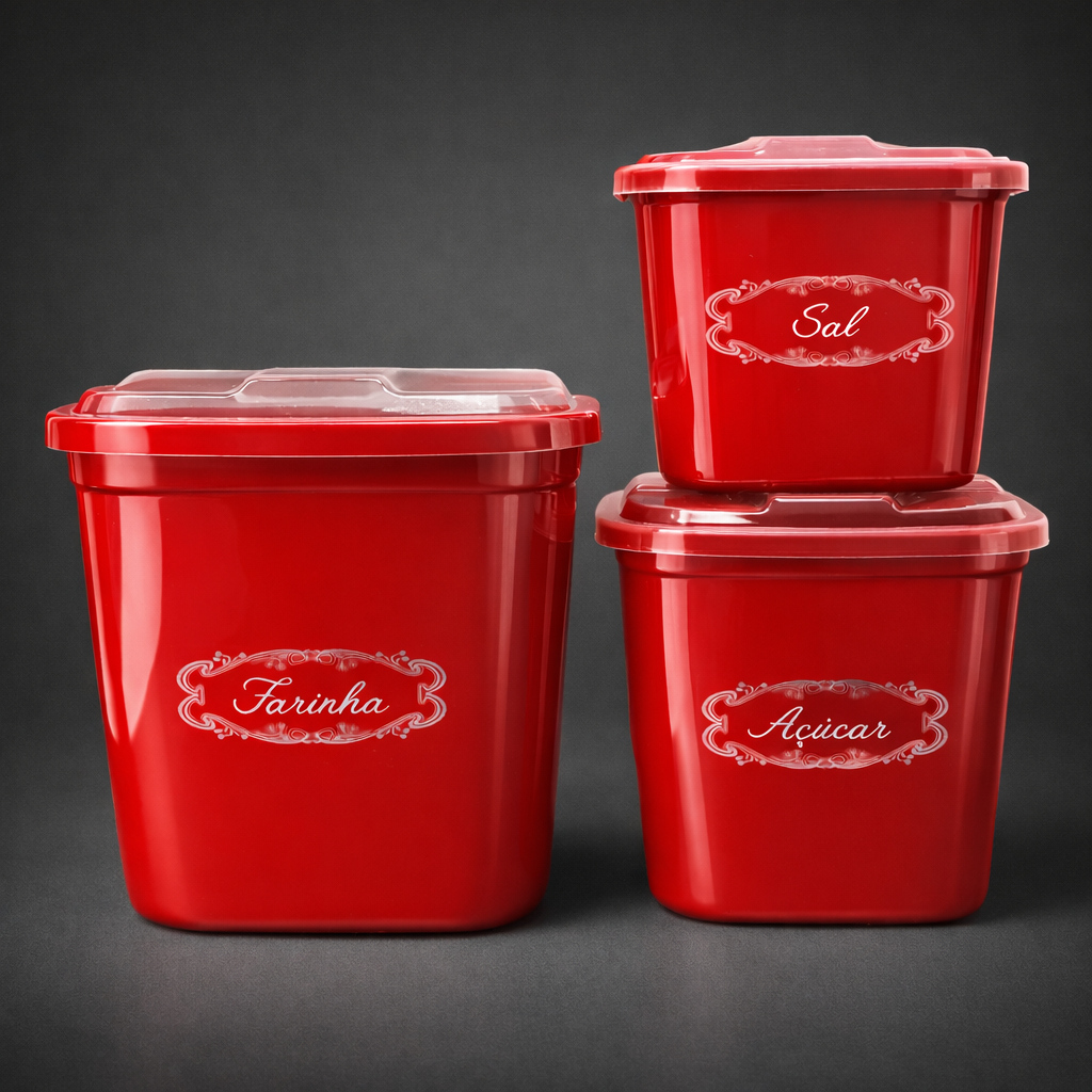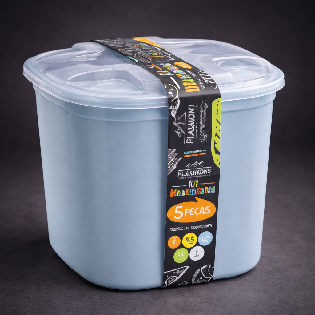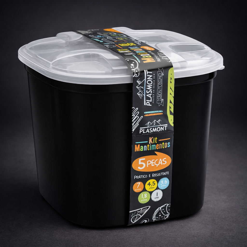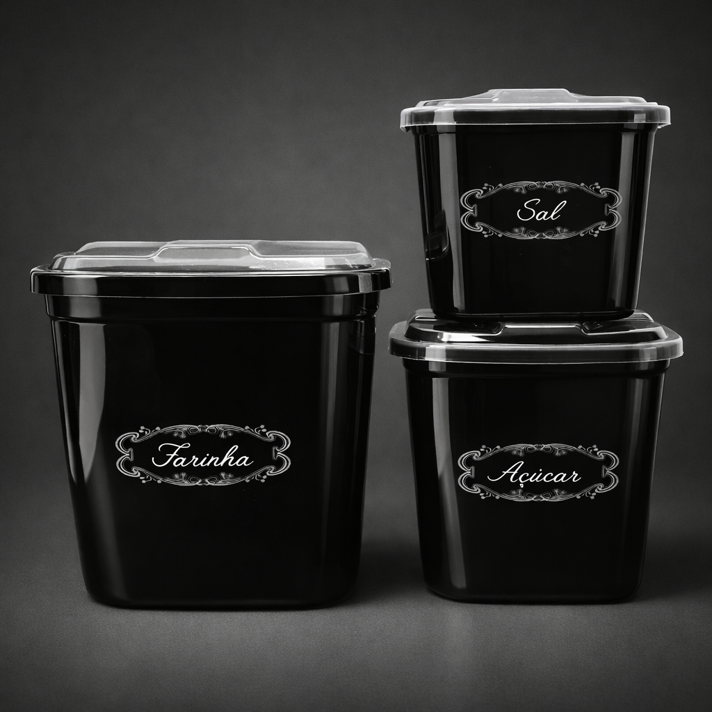 Kit 5 Potes de Mantimentos Transparente Cozinha Organizador Alimentos Plástico Mantimento Quadrado