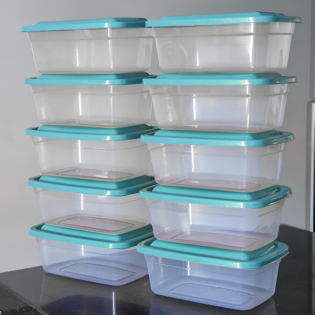 Kit 12 Potes 1 Litro transparente Retangular Marmita Fitness Lavável 1000ml