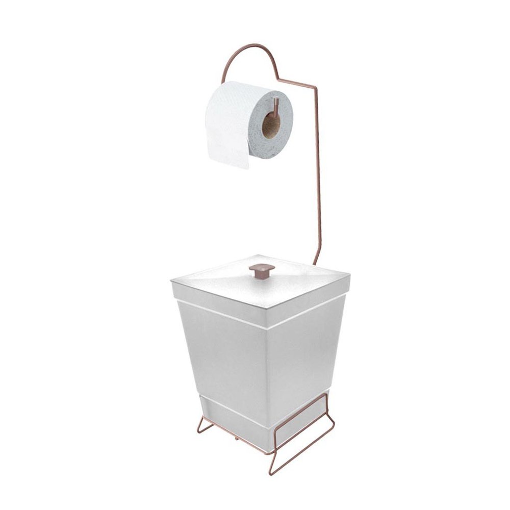Lixeira com Suporte de Papel Higiênico Rose Gold - Stolf
