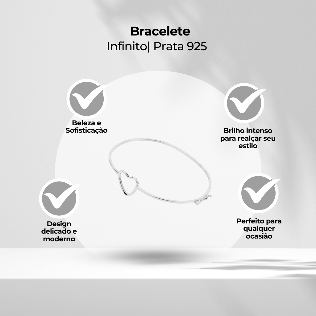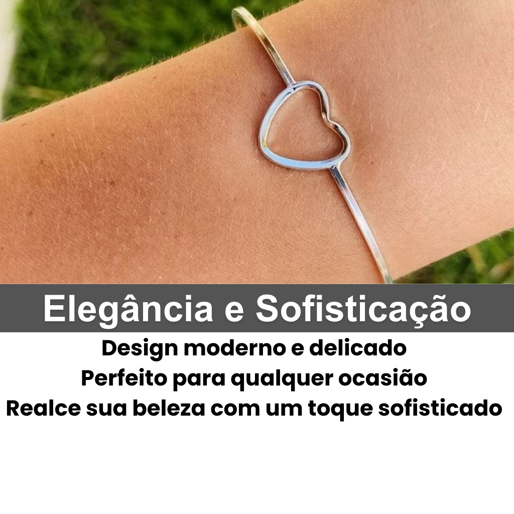 Bracelete Prata 925 Legítima Coração Geométrico Elegância - Acessório Feminino Sofisticado