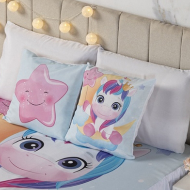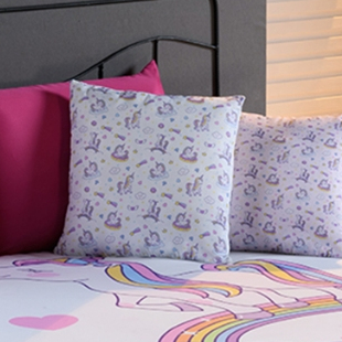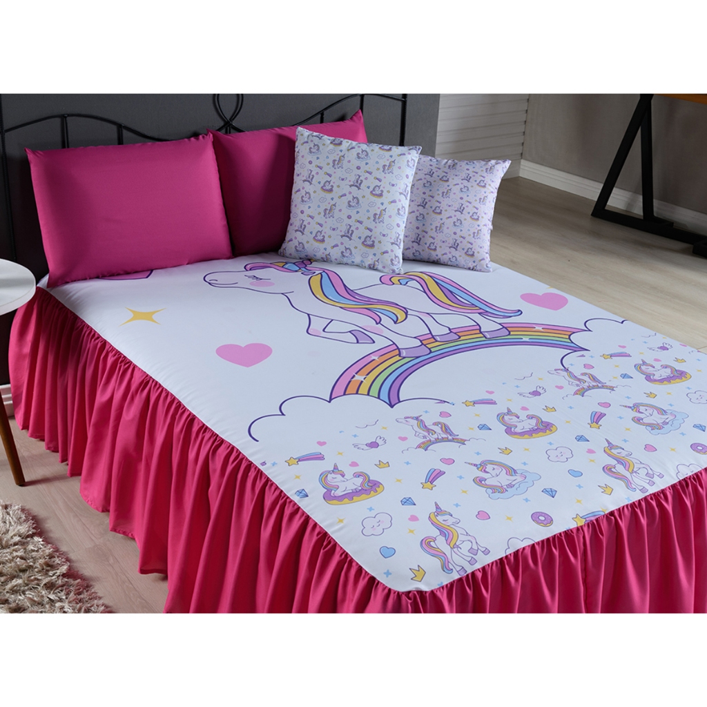 Kit Colcha Cobre Leito Infantil Casal 7 Peças Unicórnio - Decoração Quarto de Menina