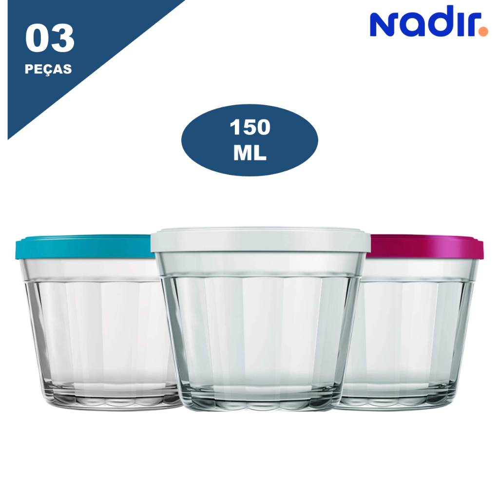 Potinho de Vidro com Tampa 3 Peças Americano 150ml