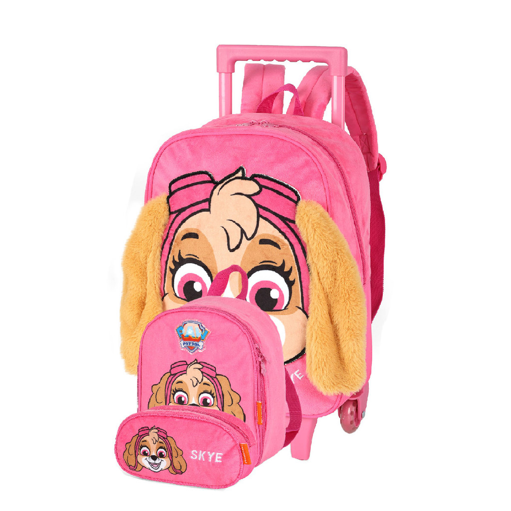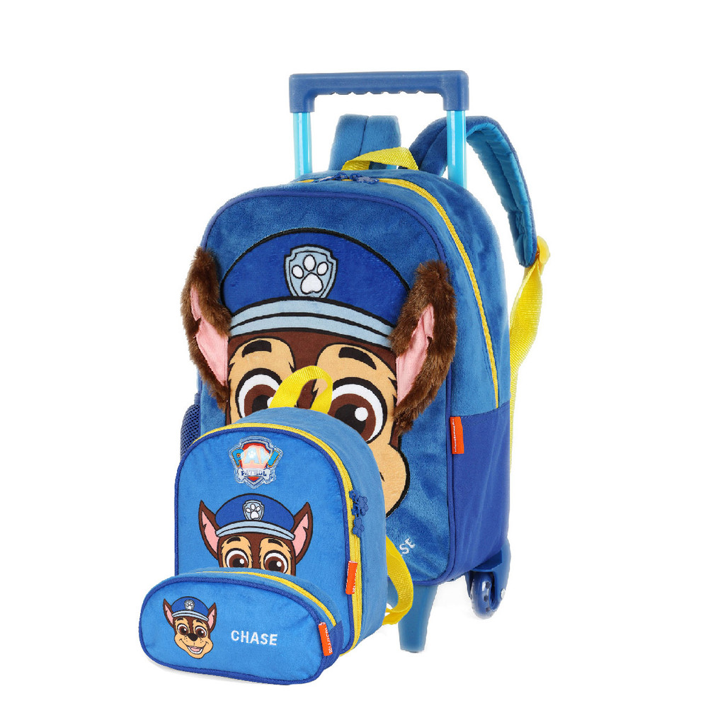 Mochila Escolar Rodinha E Costas + Lancheira + Estojo Patrulha Canina Pelúcia