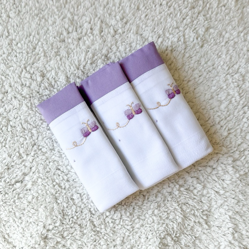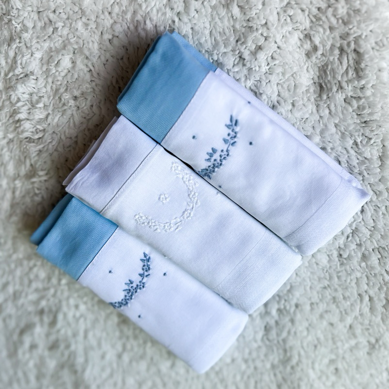 FRALDA DE OMBRO BORDADA EM TECIDO DUPLO-KIT COM 3 UNIDADES