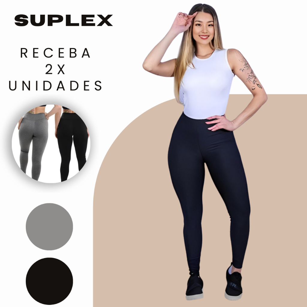 KIT 02 LEGGING SUPLEX GROSSA CINTURA ALTA TRABALHO DIA A DIA CONFORTO ACADEMIA FITNESS PROMOÇÃO