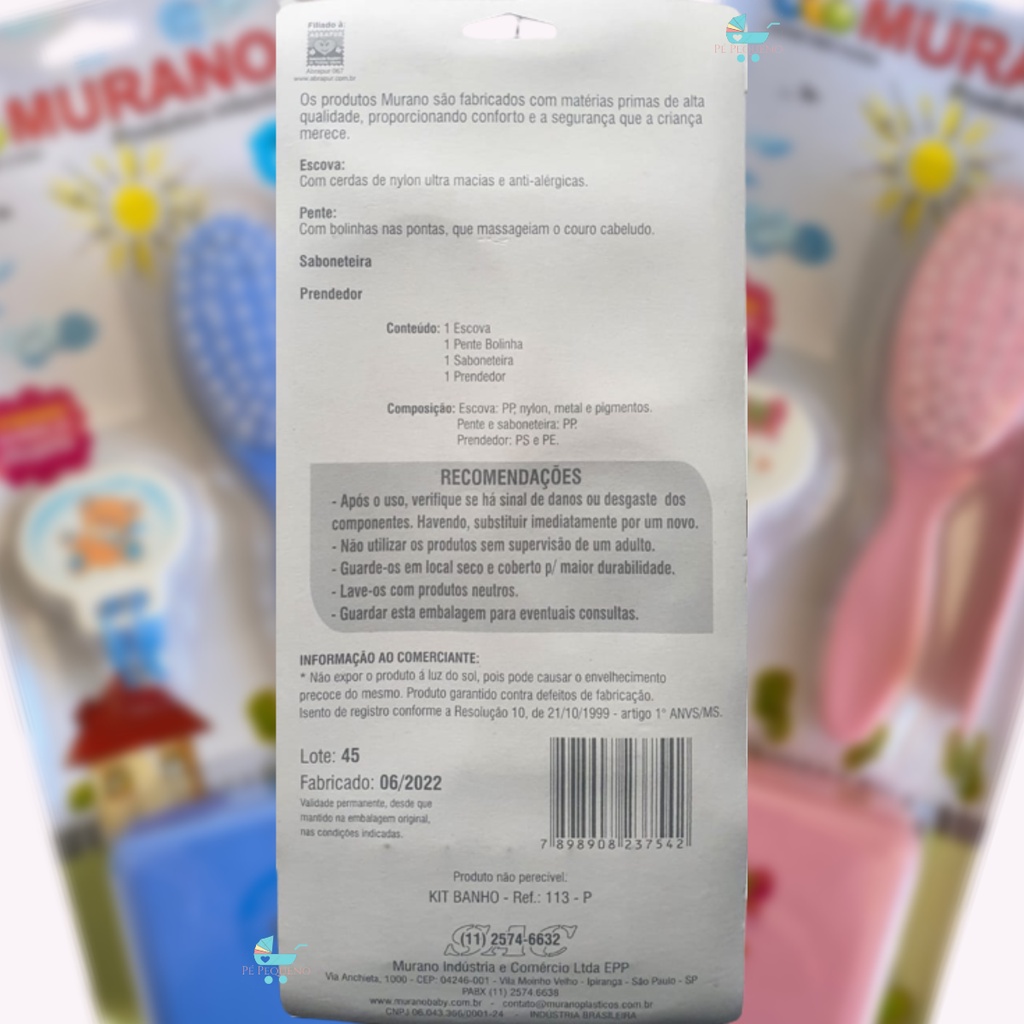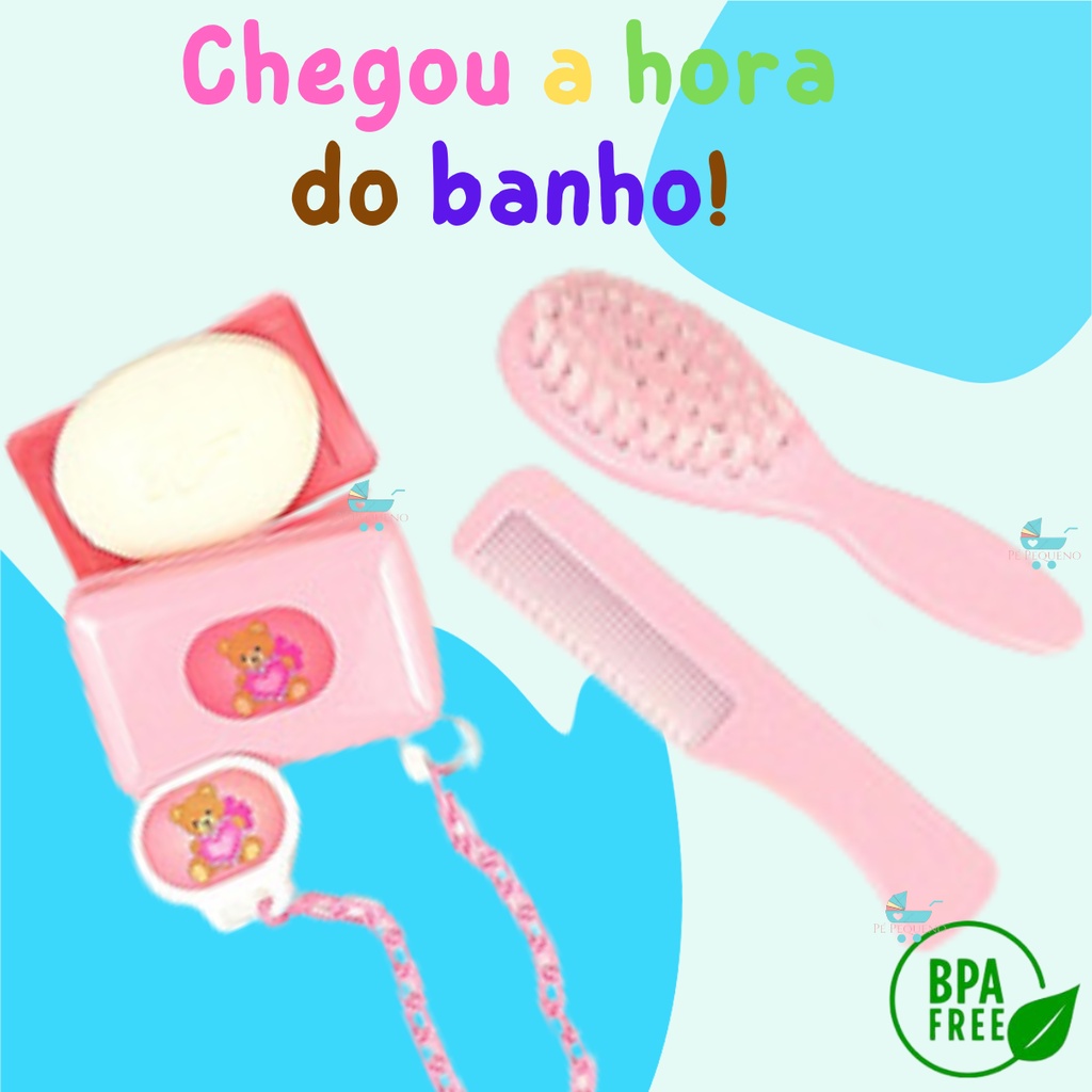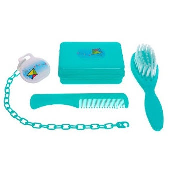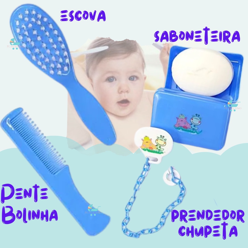 kit Higiene bebe 4 itens Pente,Escova de cabelo,Saboneteira,Prendedor chupeta MURANO-Envio imediato