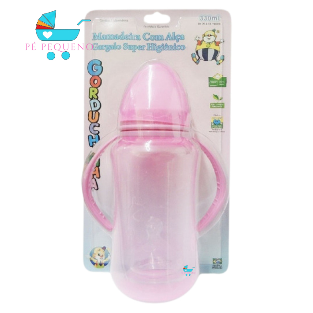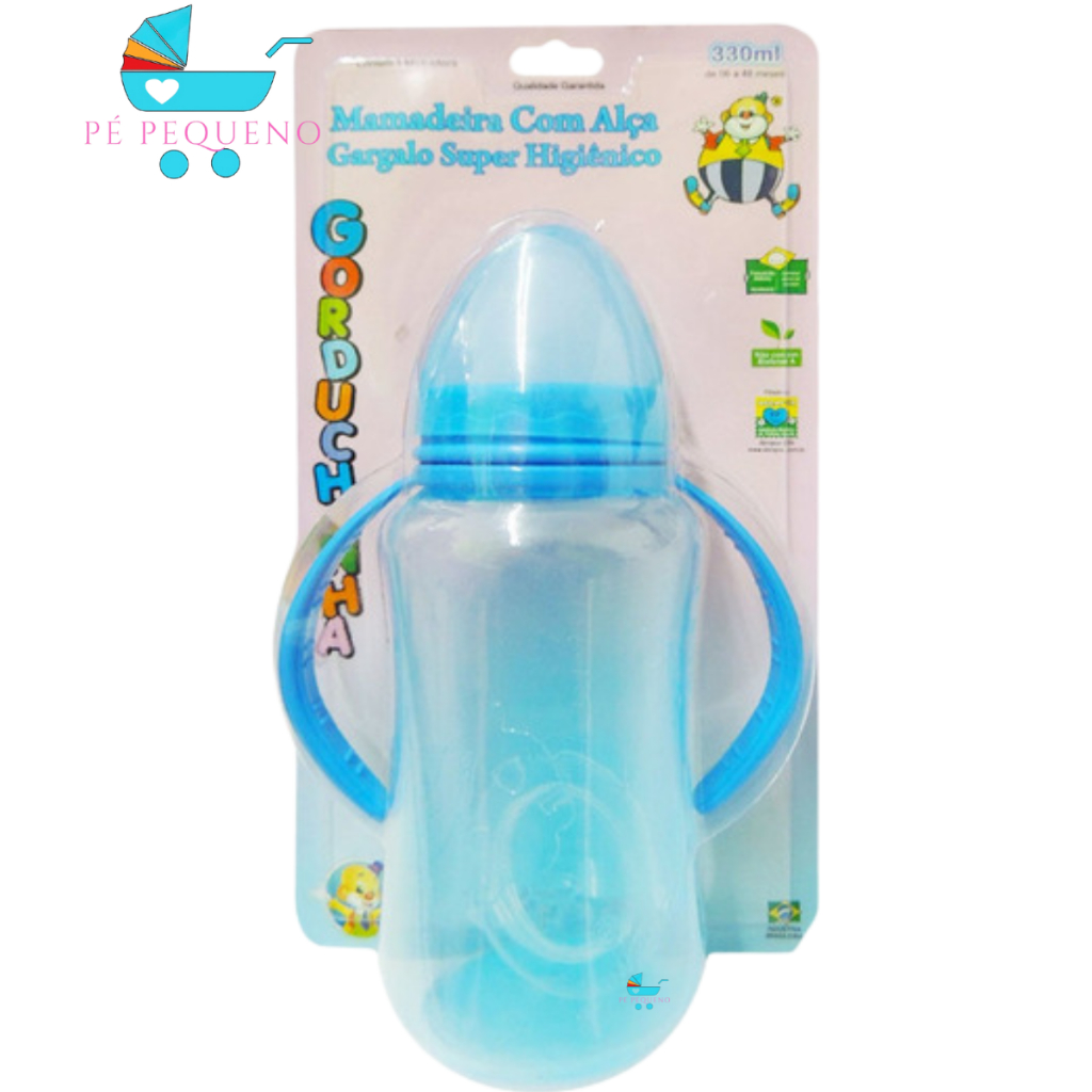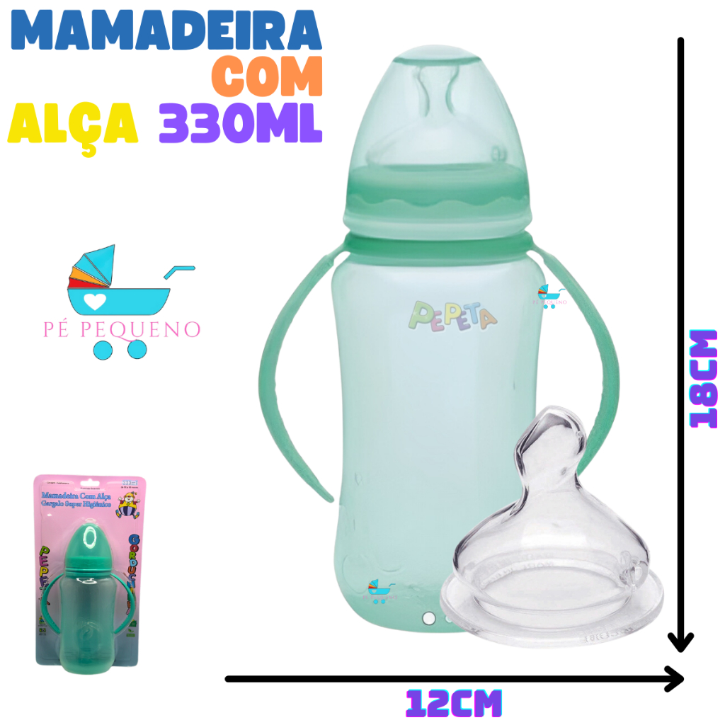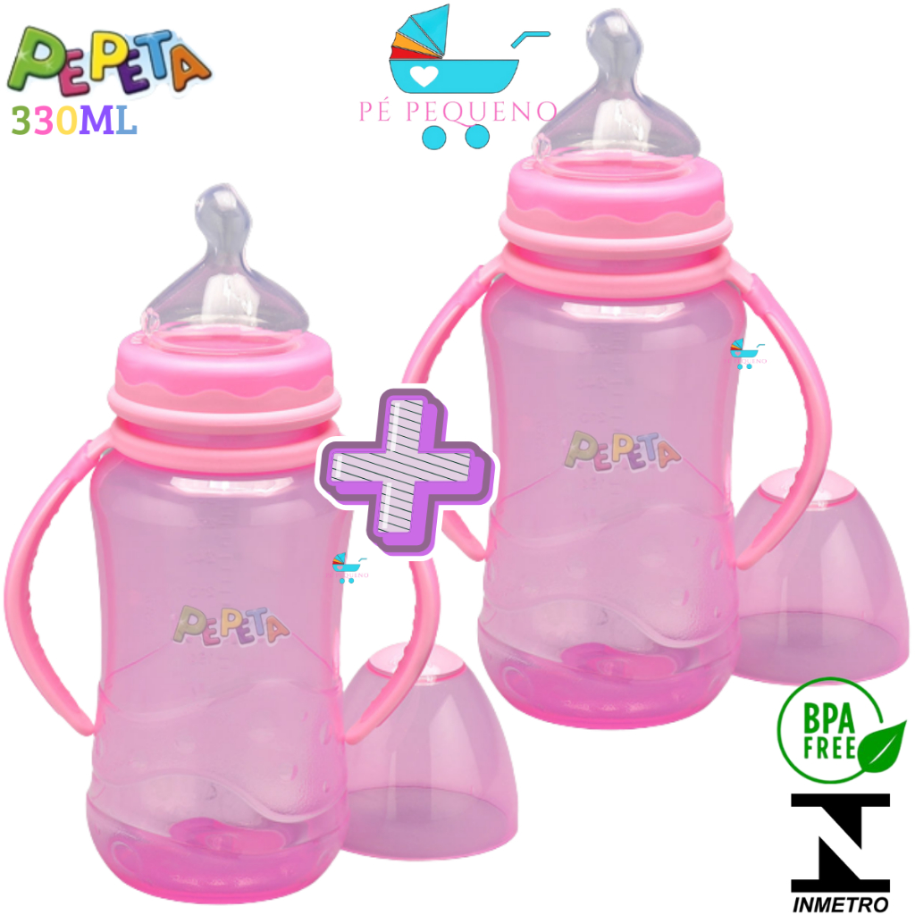Kit 2 mamadeira 330ml bico de silicone transição infantil com alça.