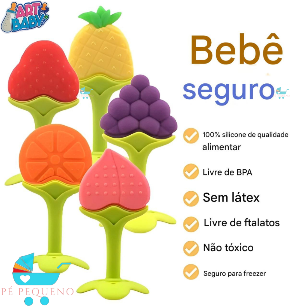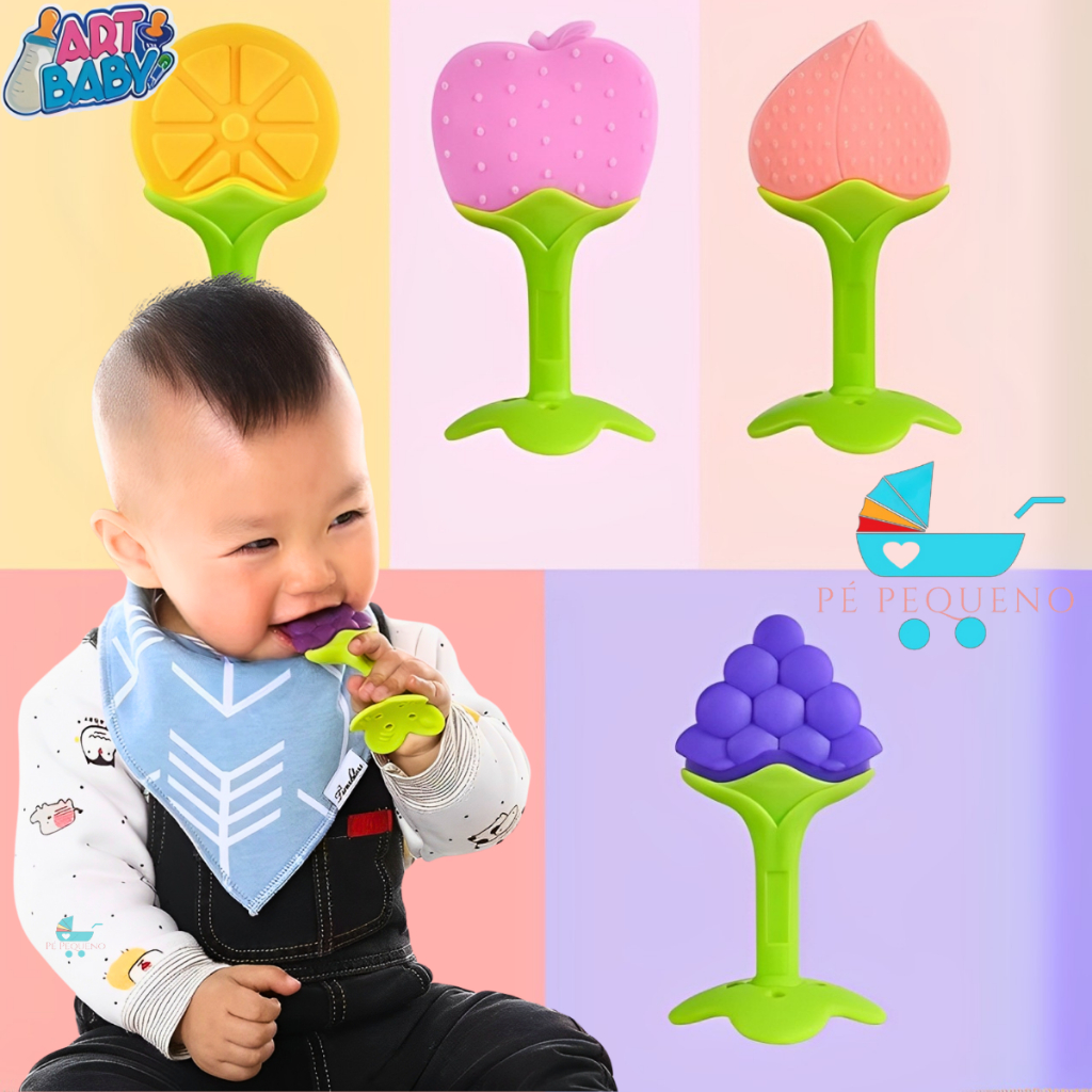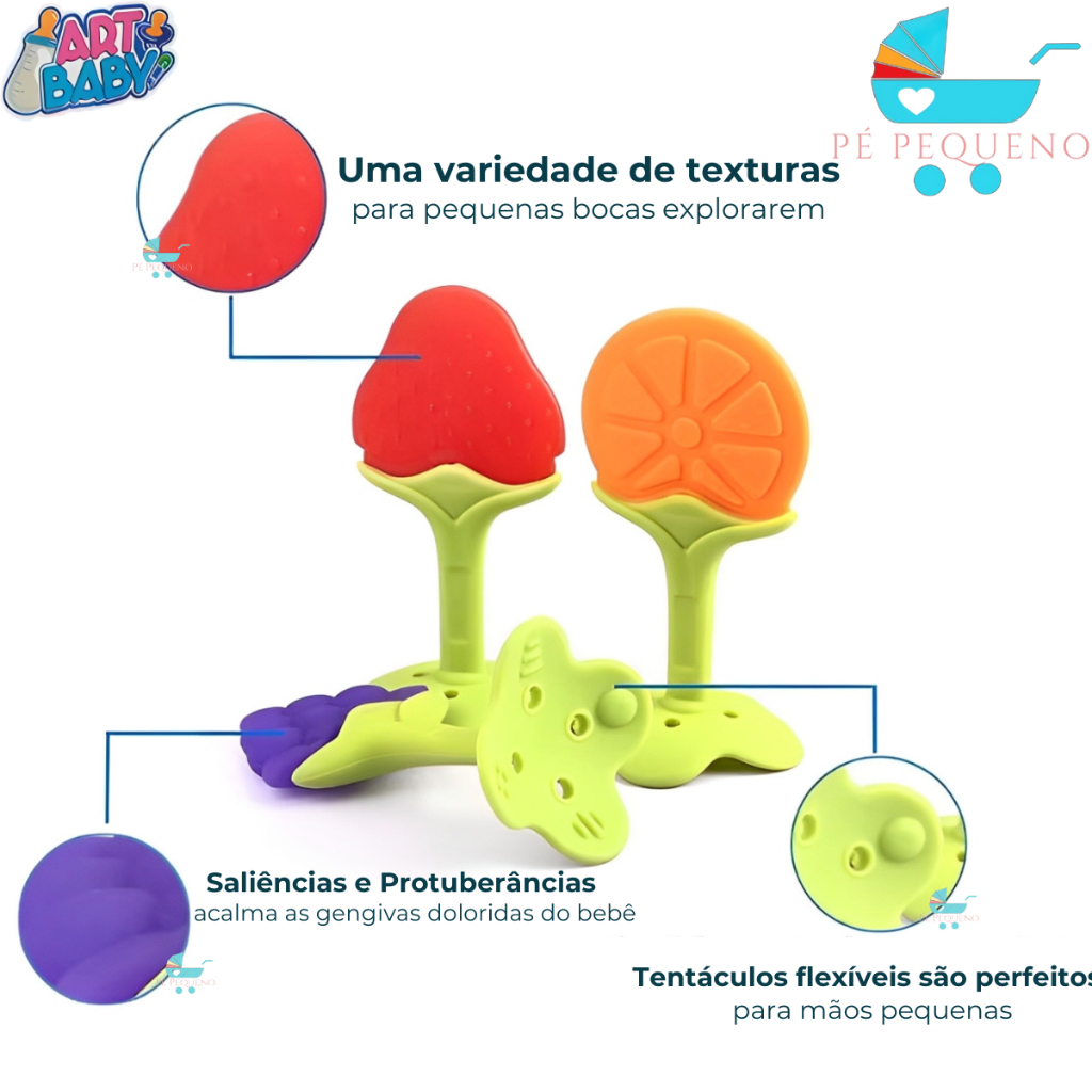 kit mordedor para bebê sensorial silicone frutas – zein
