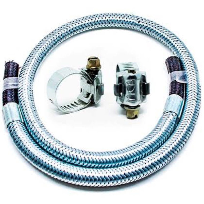Mangueira de Gás de 3 metros para Gás GJP Botijão com malha flexível acompanha presilha de aperto.