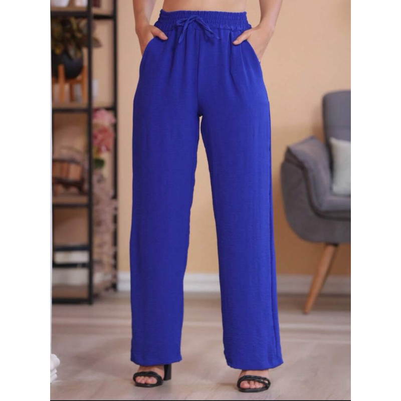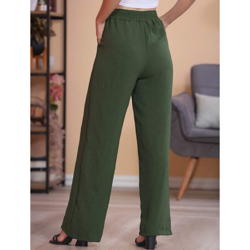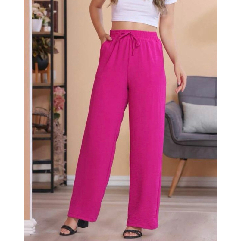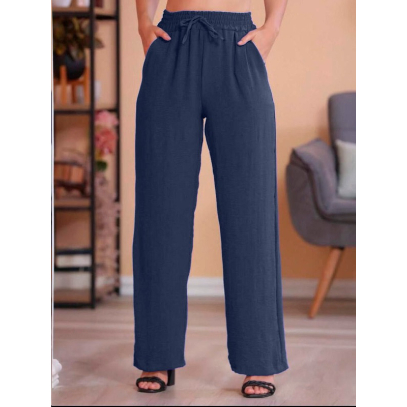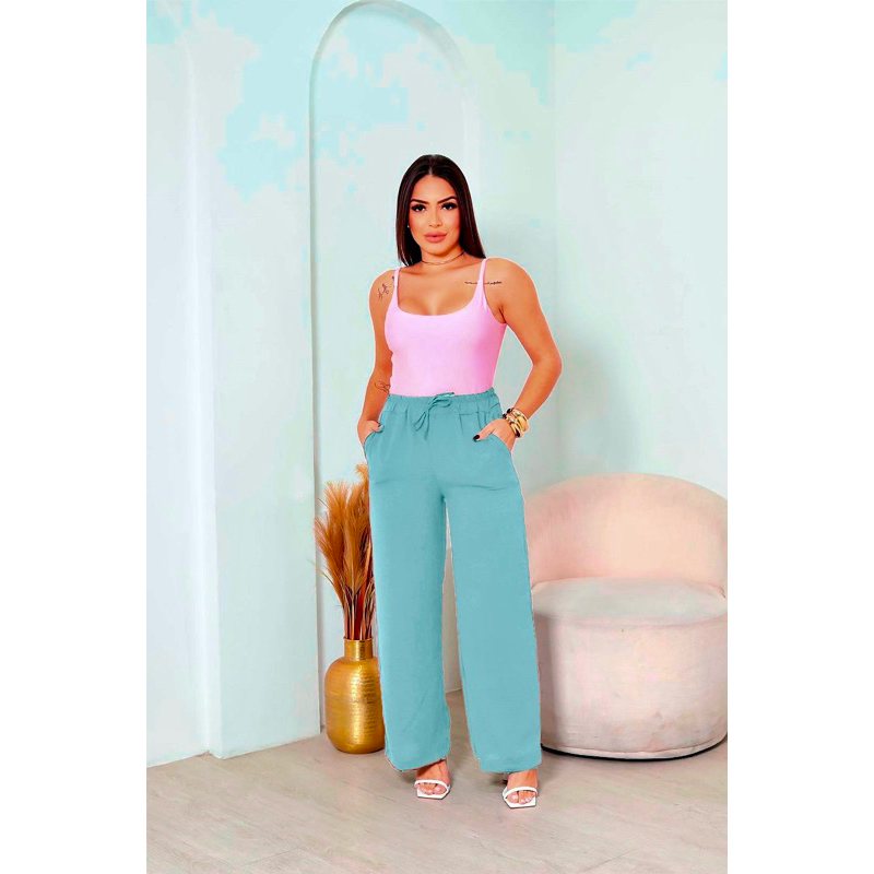 Calça Pantalona Alfaiataria Feminina Com Bolso Cintura Alta tecido leve moda verão tecido Duna