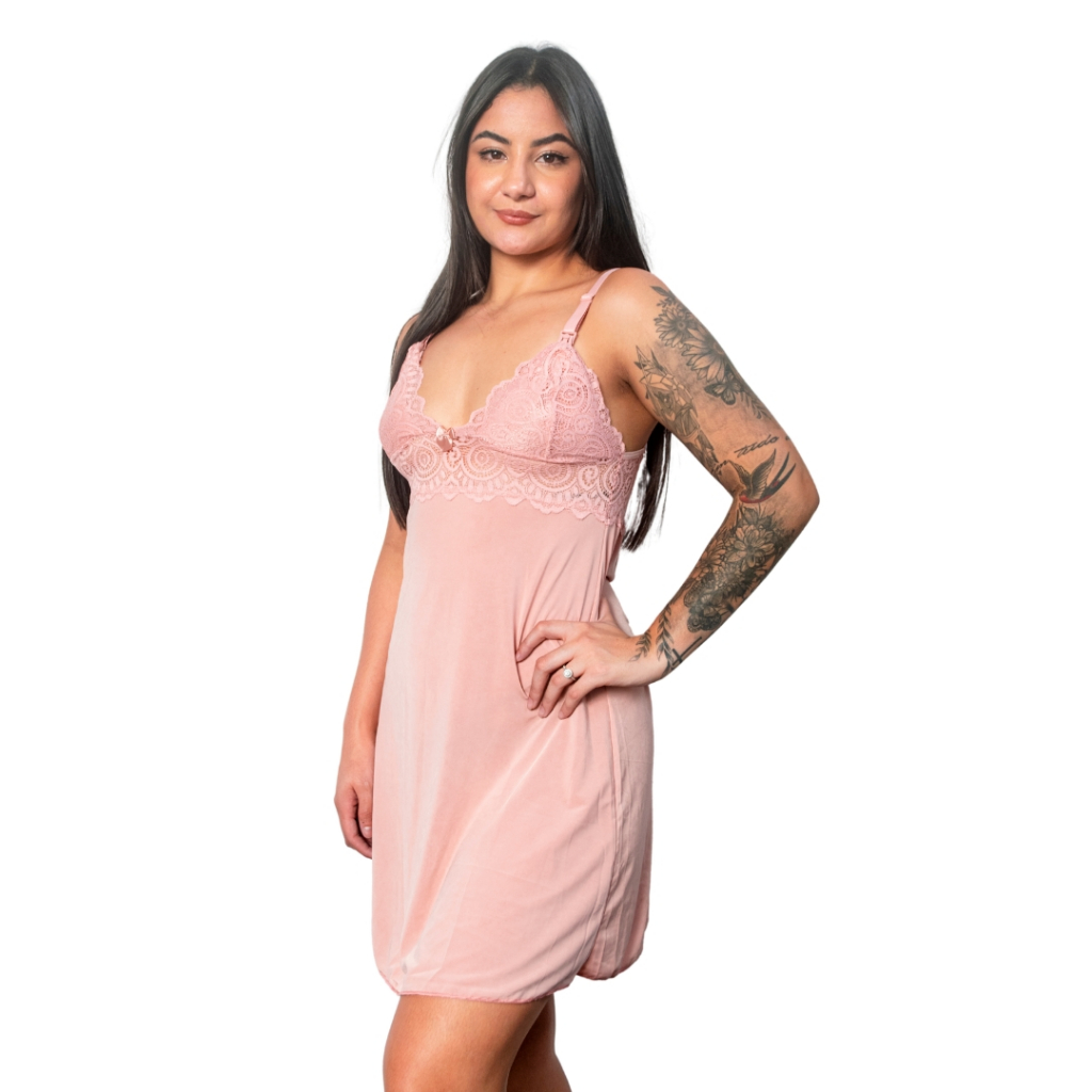 Camisola Amamentação Bicolor Gestante Fecho Pós Parto Maternidade Vestido Dormir