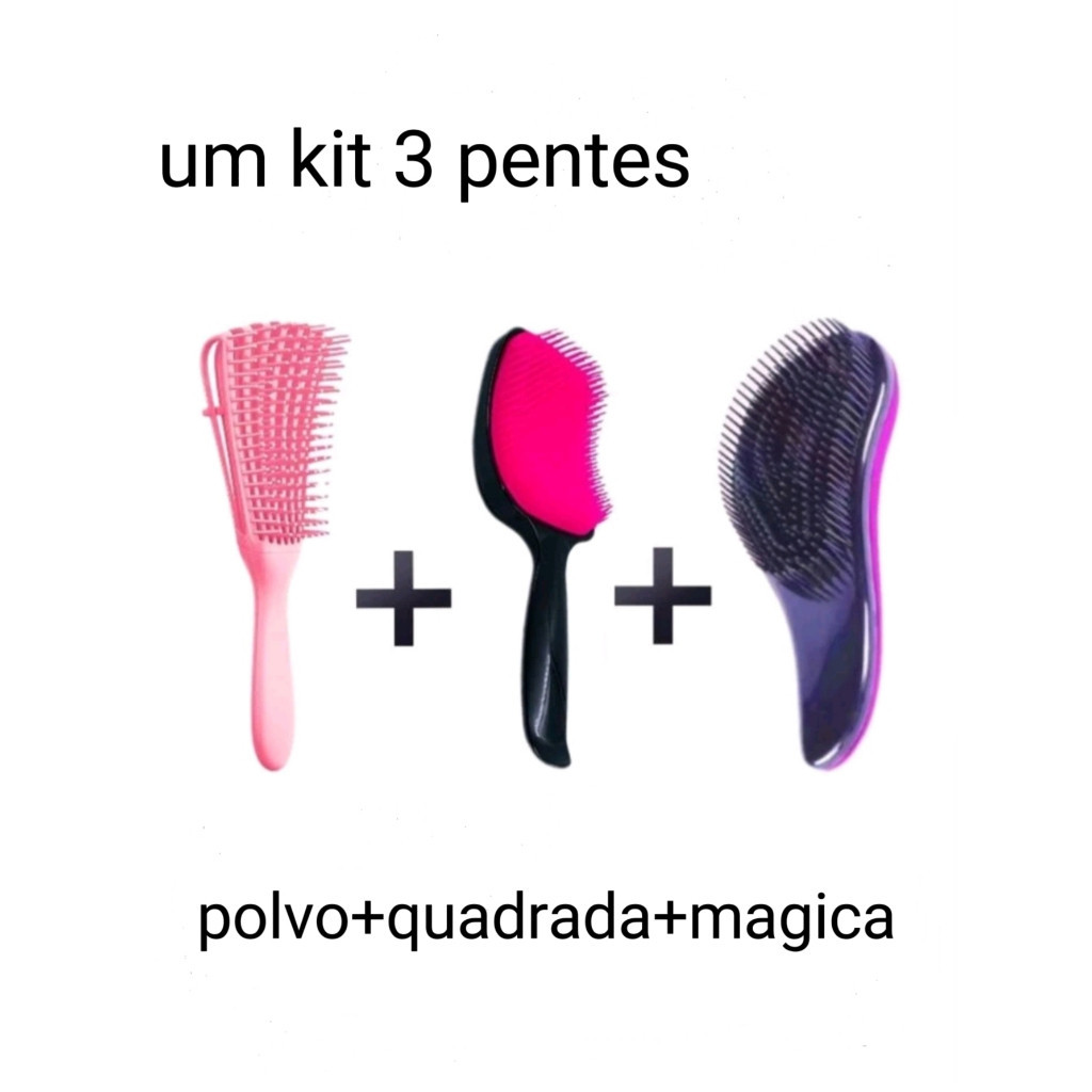 Kit 3 Escovas e Touca de Cetim cor aleatória-polvo+magica+gross+touca