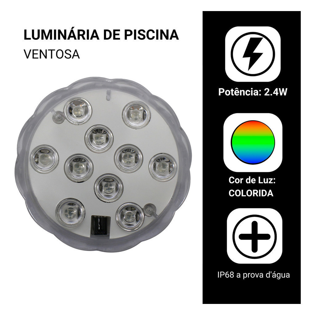 Luz Led Piscina Colorida Controle Remoto Pilha Ventosa