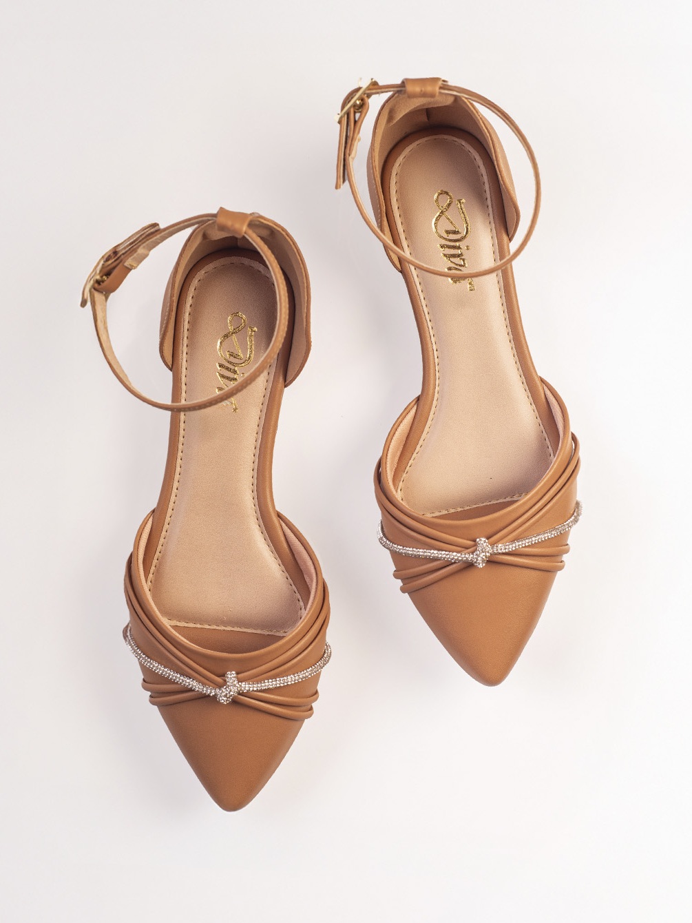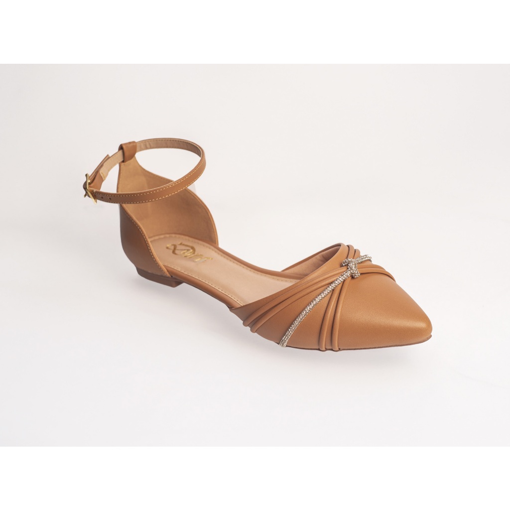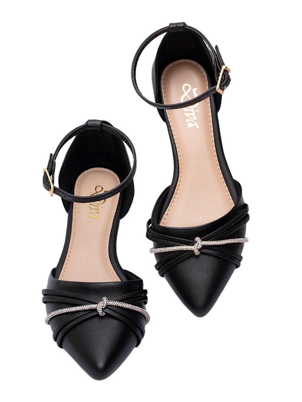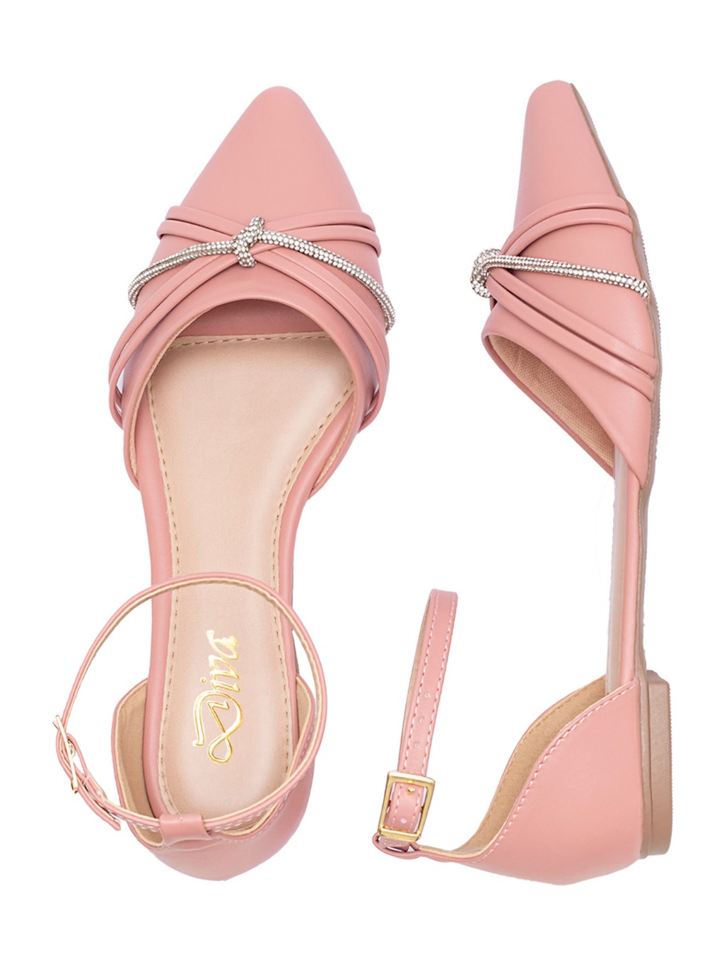 Sapatilha Feminina Salomé Com Tiras De Strass Rasteirinha Bico Fino Confort Feminina Adulta