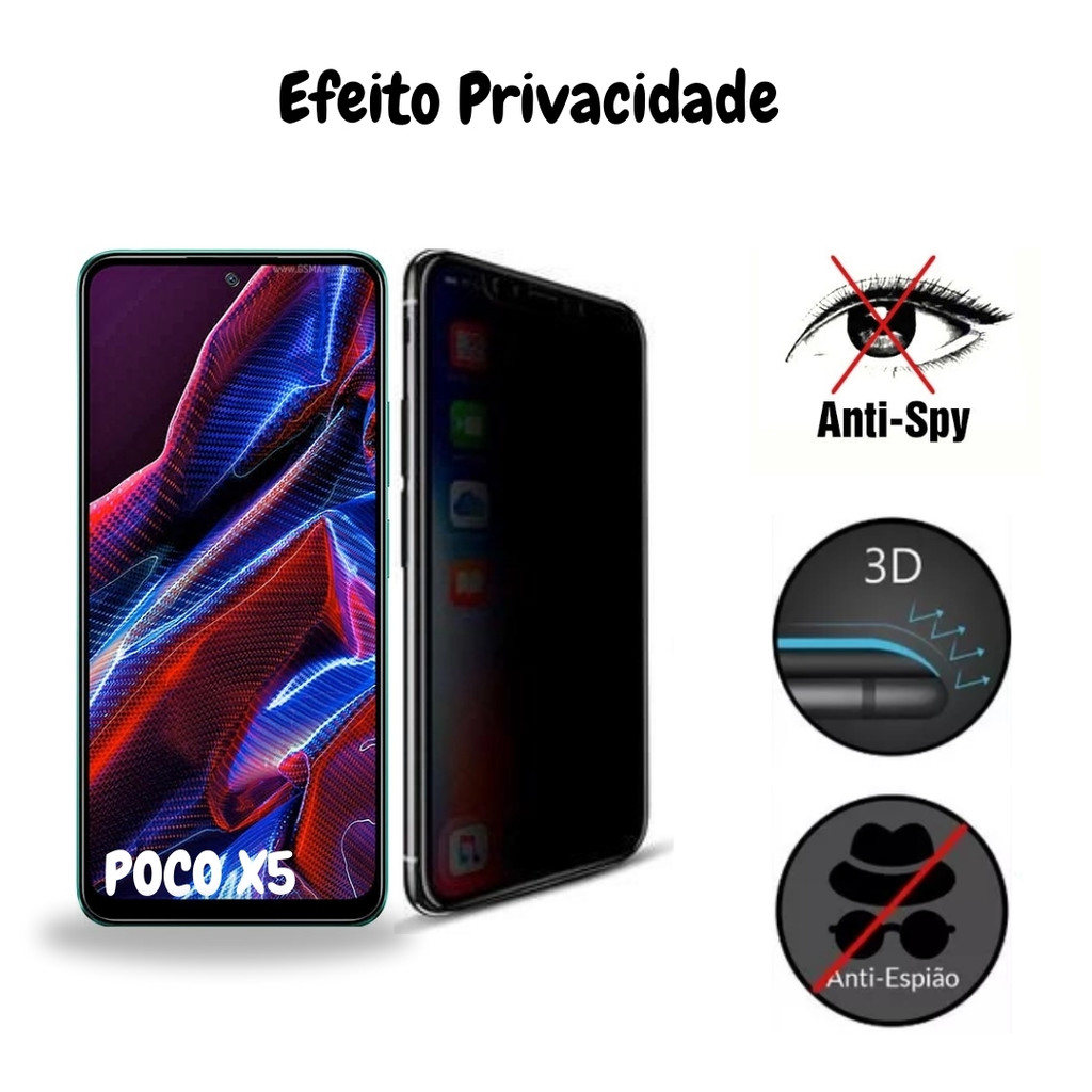 Película de Vidro 3D Privacidade Para Xiaomi Poco X5 Com Capinha De Silicone Preta