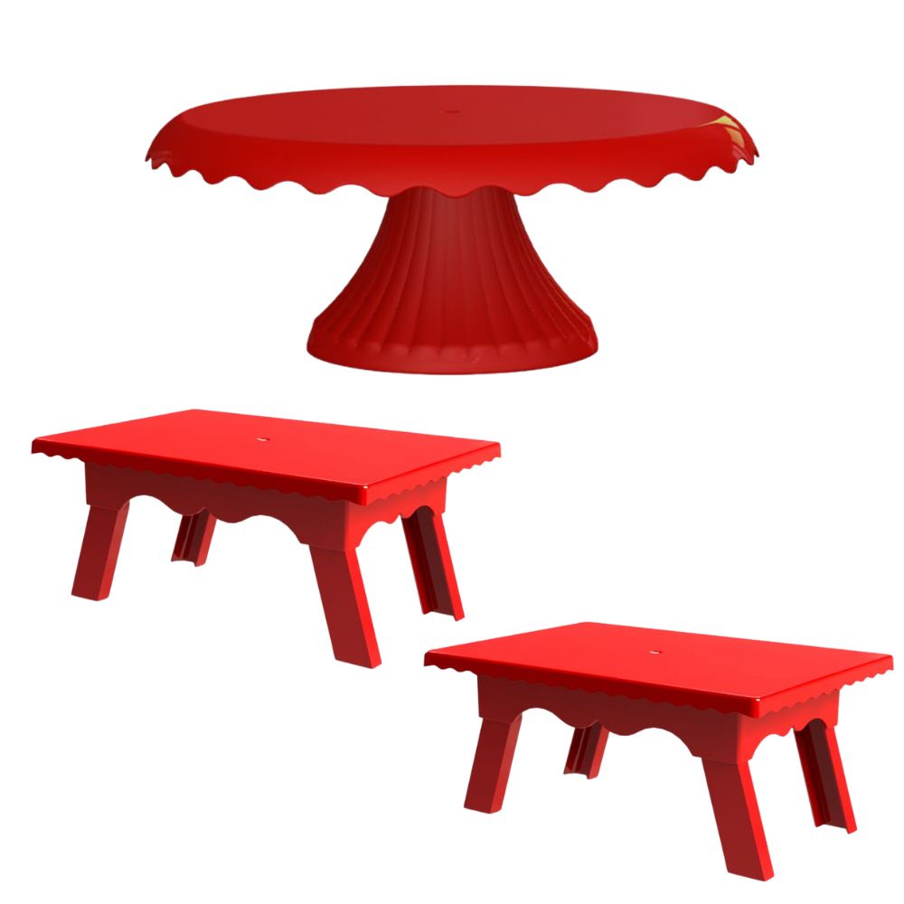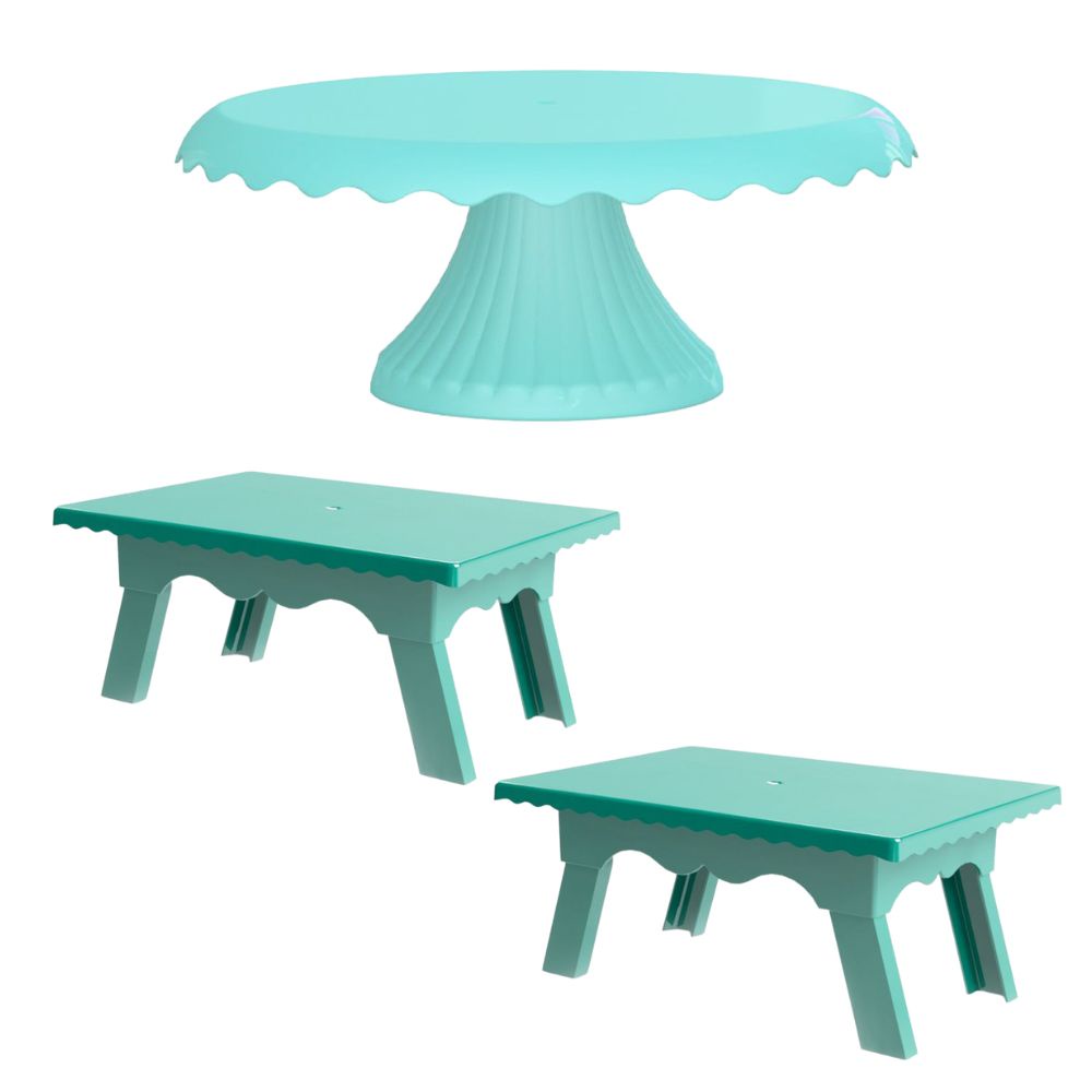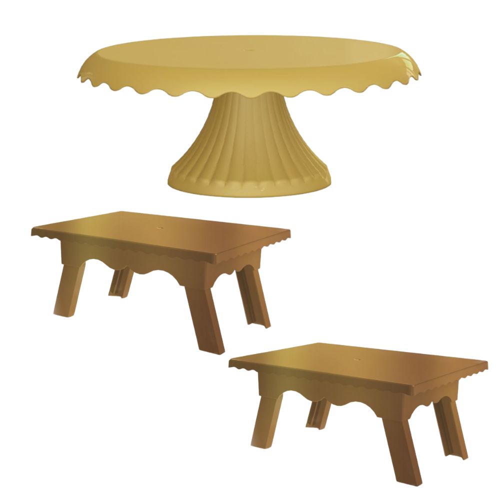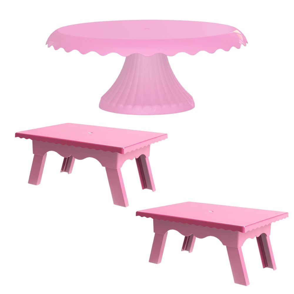 Kit 1 Boleira Cake Renda 22 CM + 2 Mesinhas Para Festas