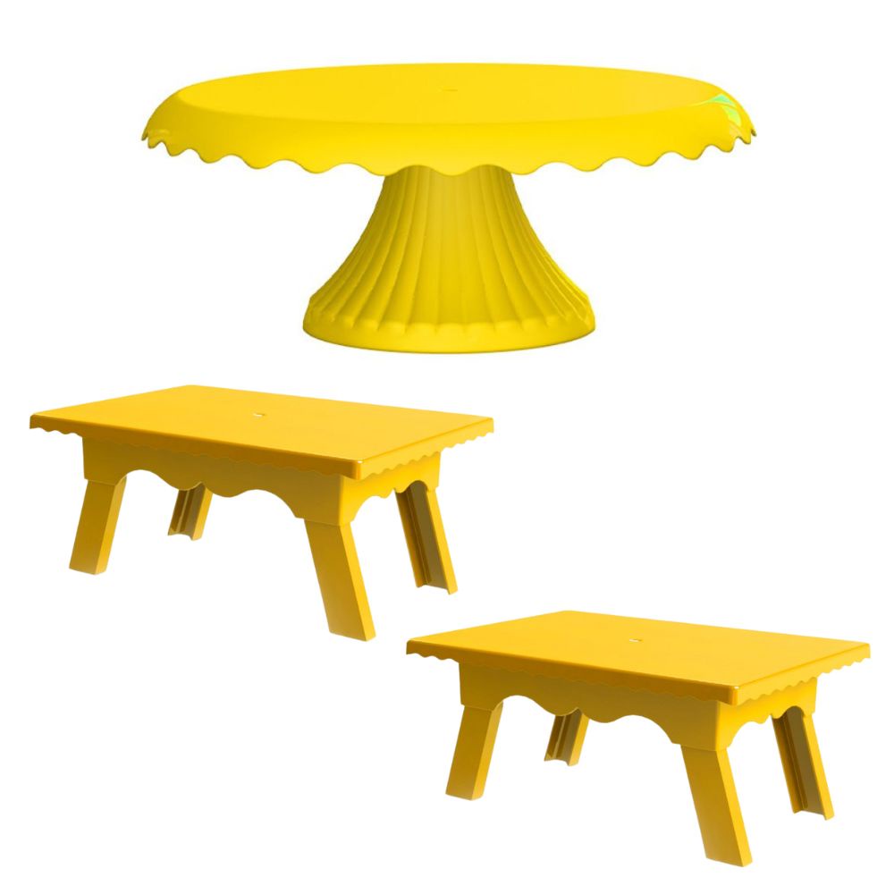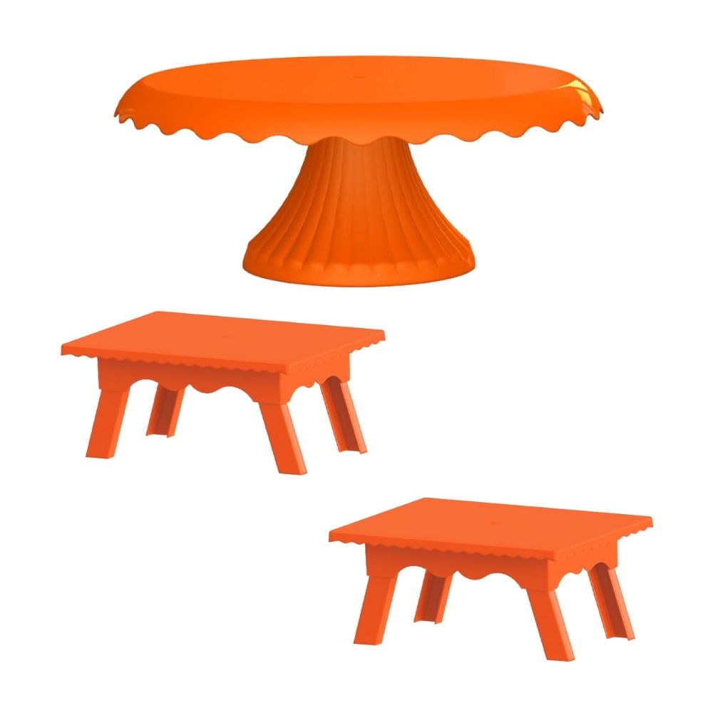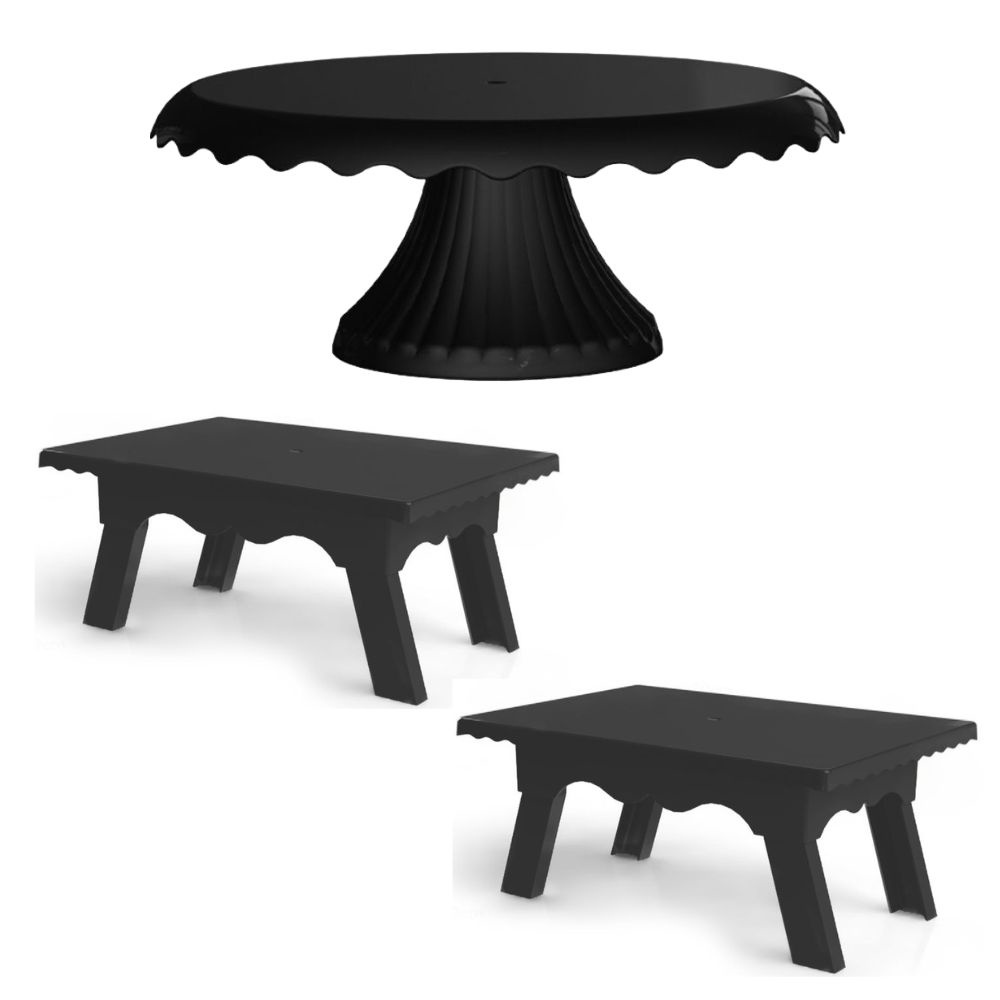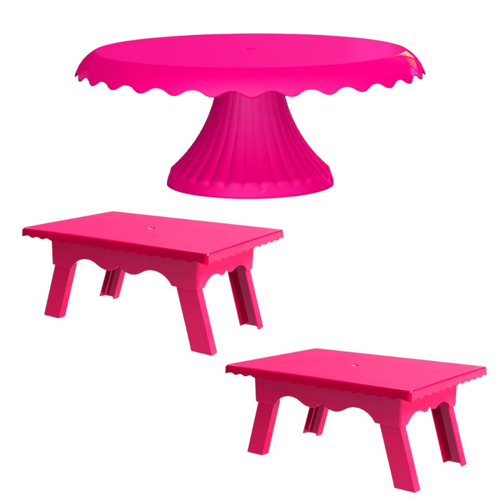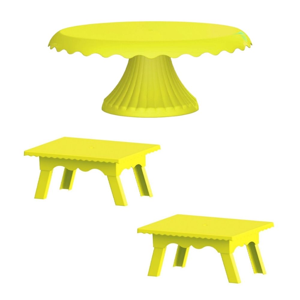Kit 1 Boleira Cake Renda 22 CM + 2 Mesinhas Para Festas