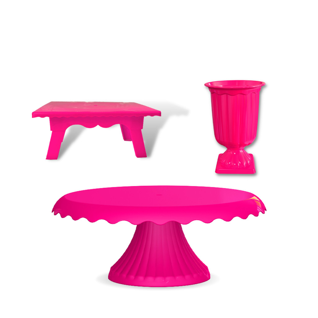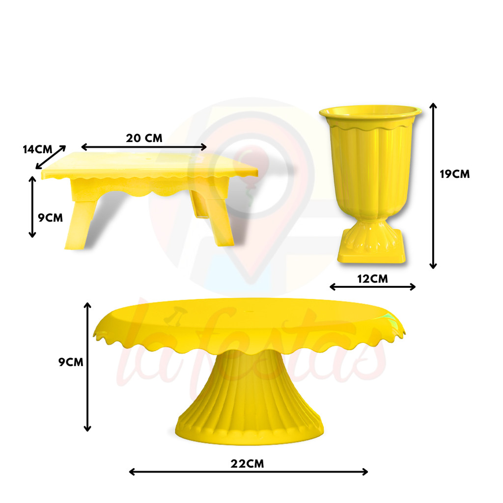 Kit Festa 1 Boleira Renda Cake 22cm + 1 Vaso Grego + 1 Mesinha - (+11 cores)