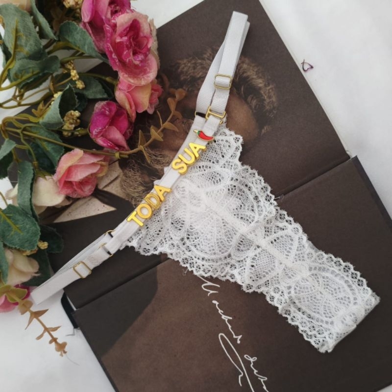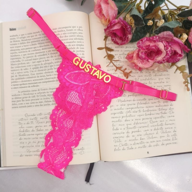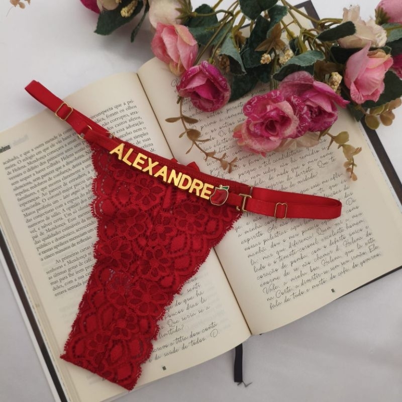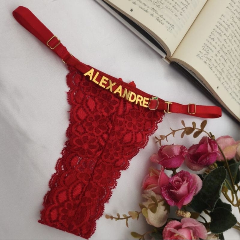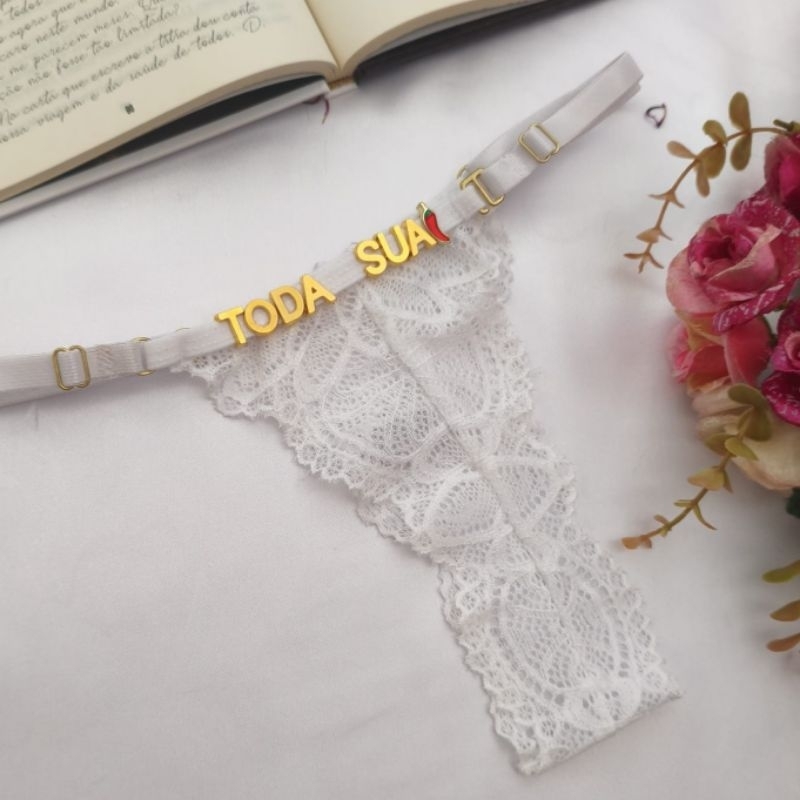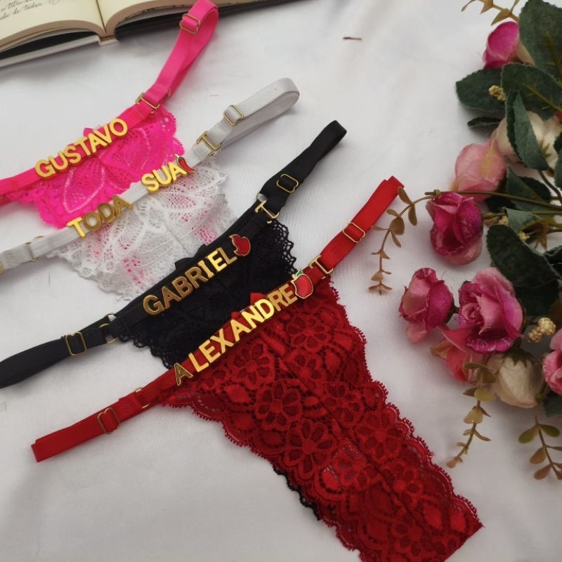 Calcinha personalizada com nome em letras douradas tanga renda sensual
