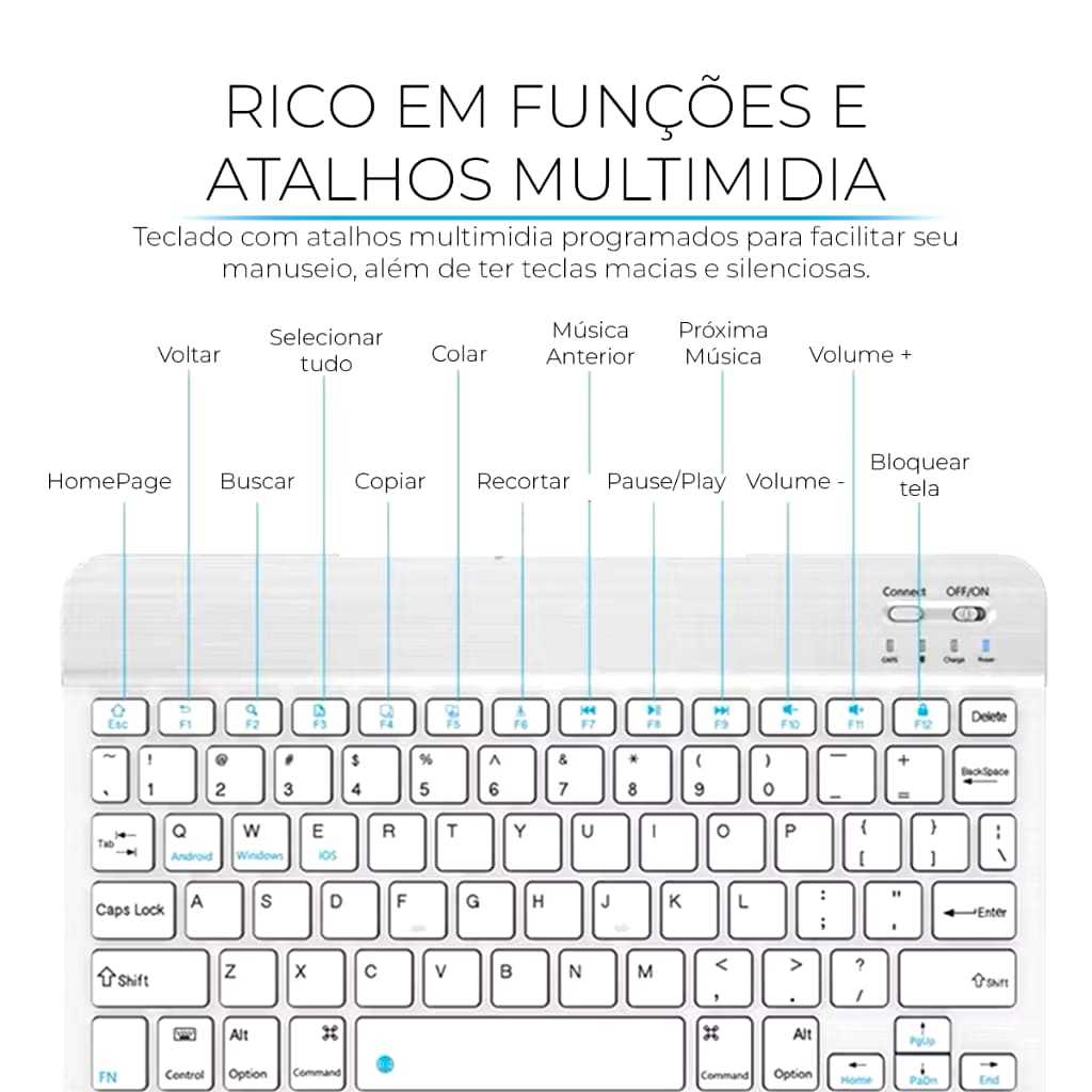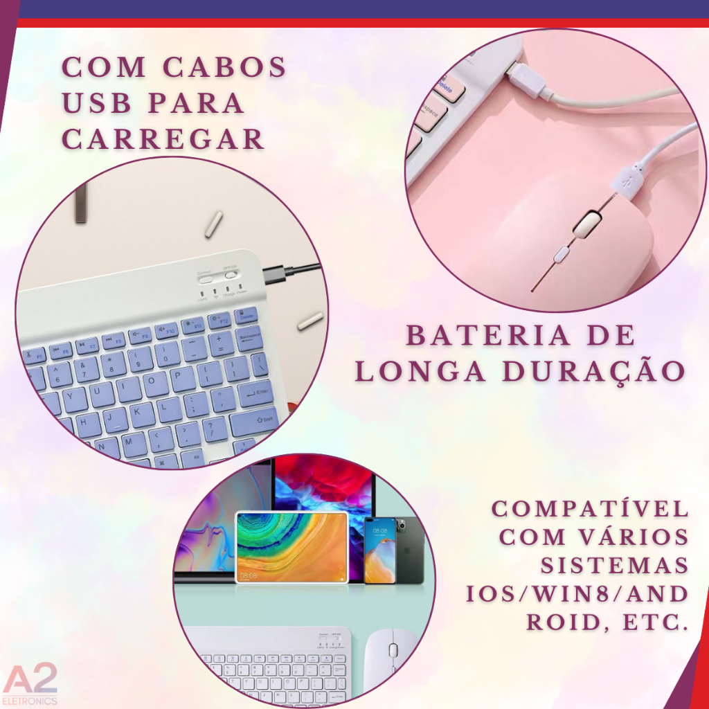 Kit Mouse Teclado Sem Fio Bluetooth Tablet Notebook
