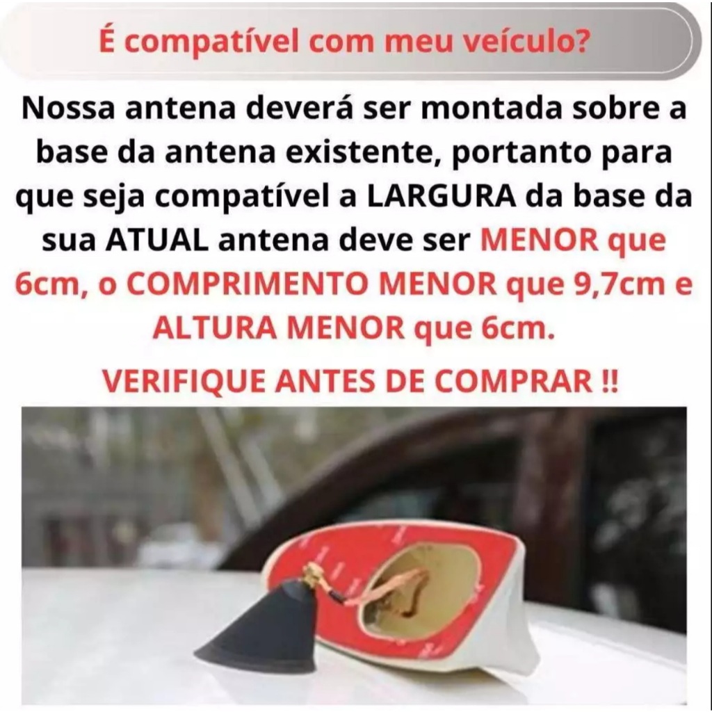 Antena Veículo Automotivo Shark Tipo Barbatana Tubarão Universal Esportiva Recepção Rádio AM FM