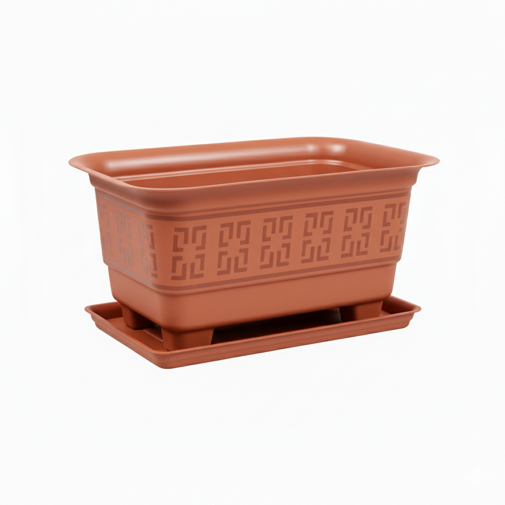 Kit 3 Vasos Retangular Floreira Mini Com Prato 3,5 Litros Plástico Reforçado