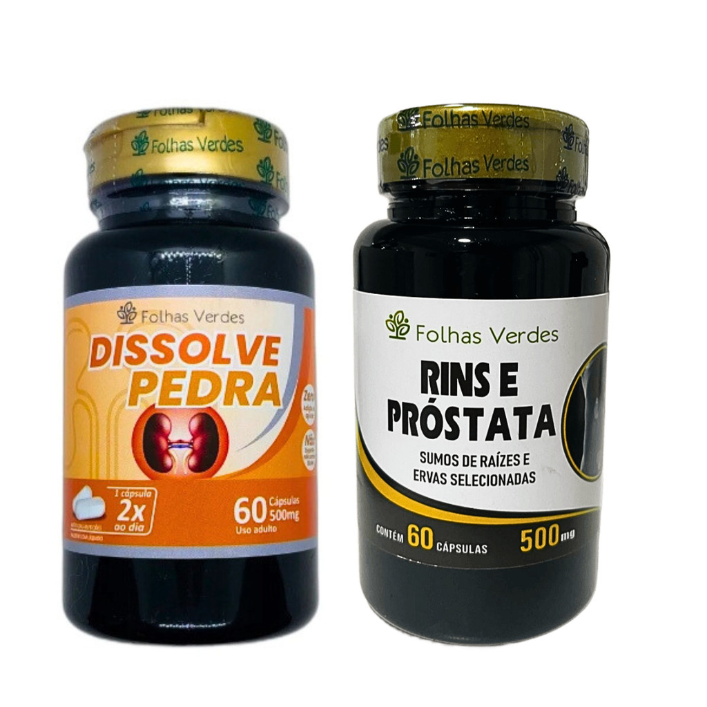 KIT Rins e Próstata + Dissolve Pedra 500mg 120 Cápsulas Folhas Verdes