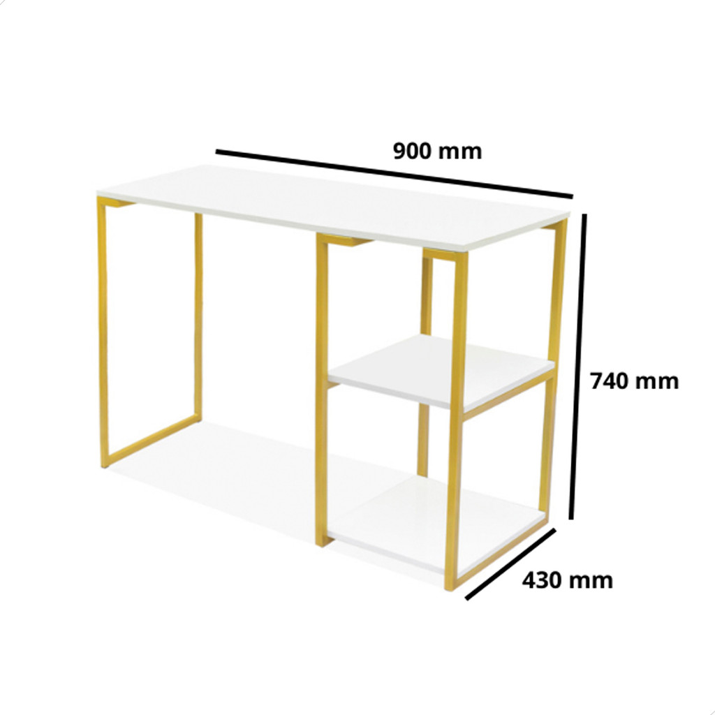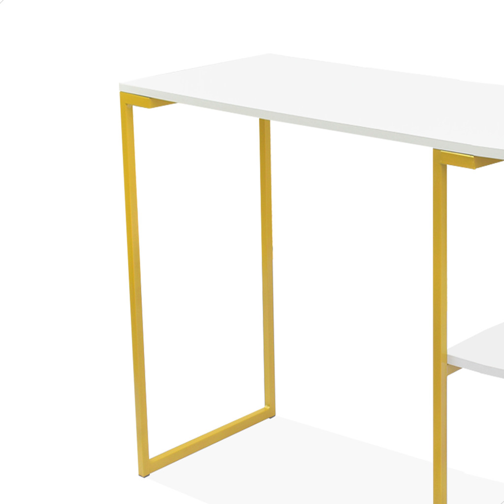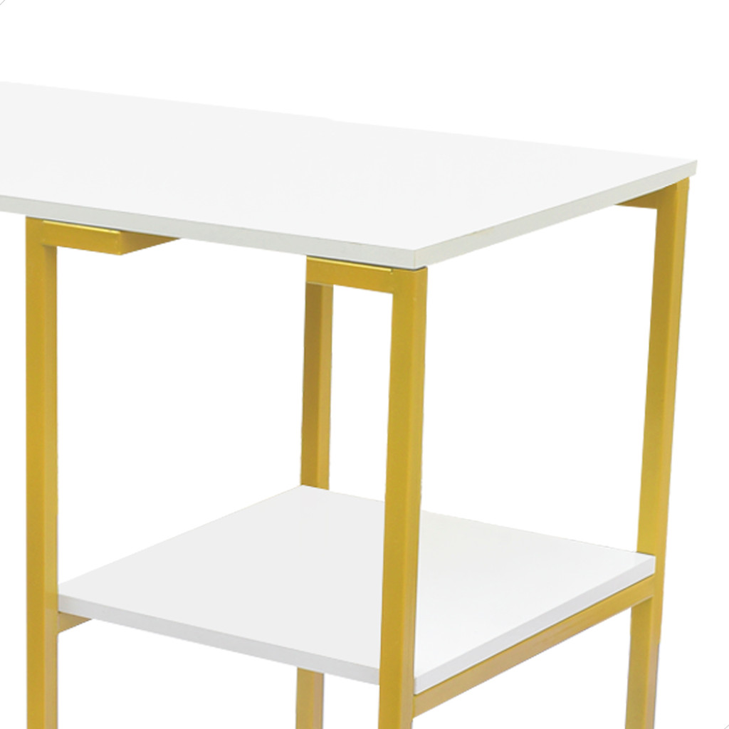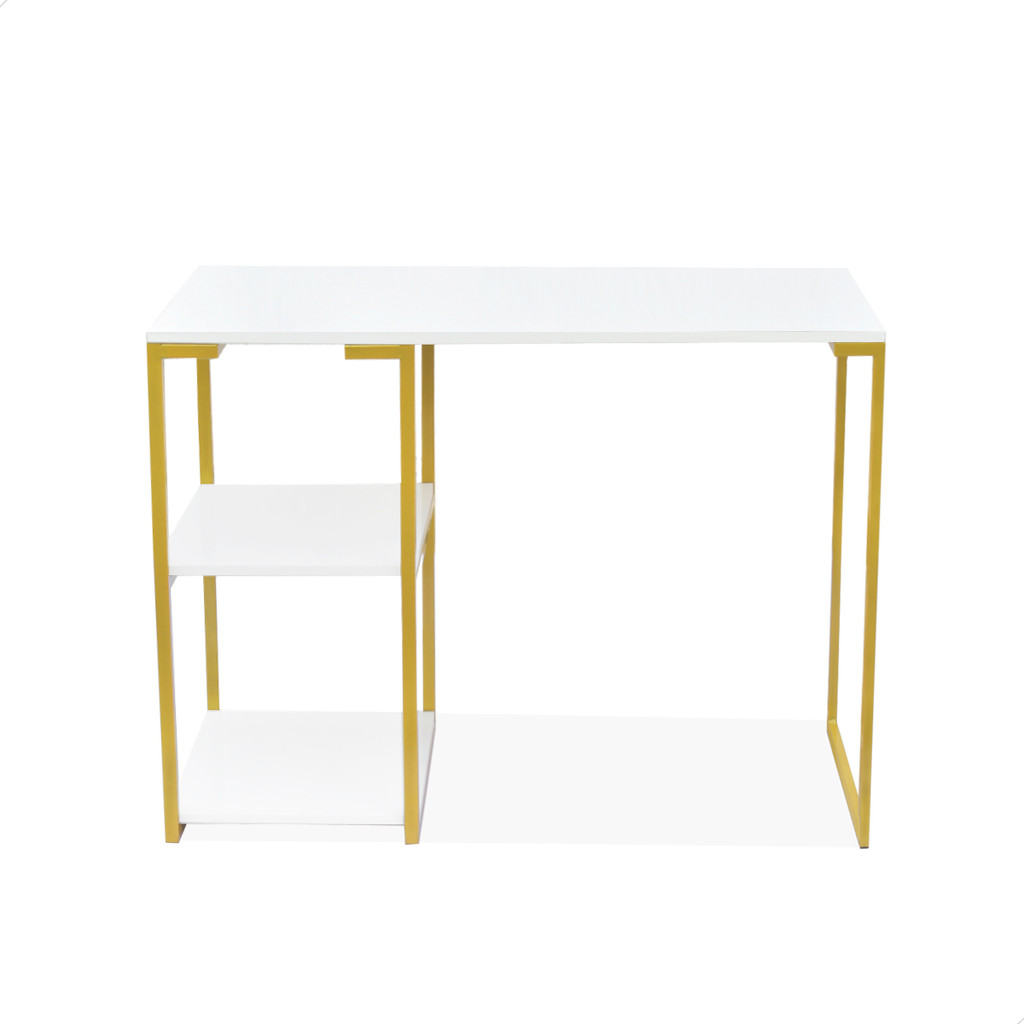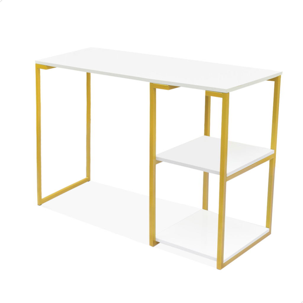 Mesa Escrivaninha Quarto Prateleira Nic 900 Dourado Branco