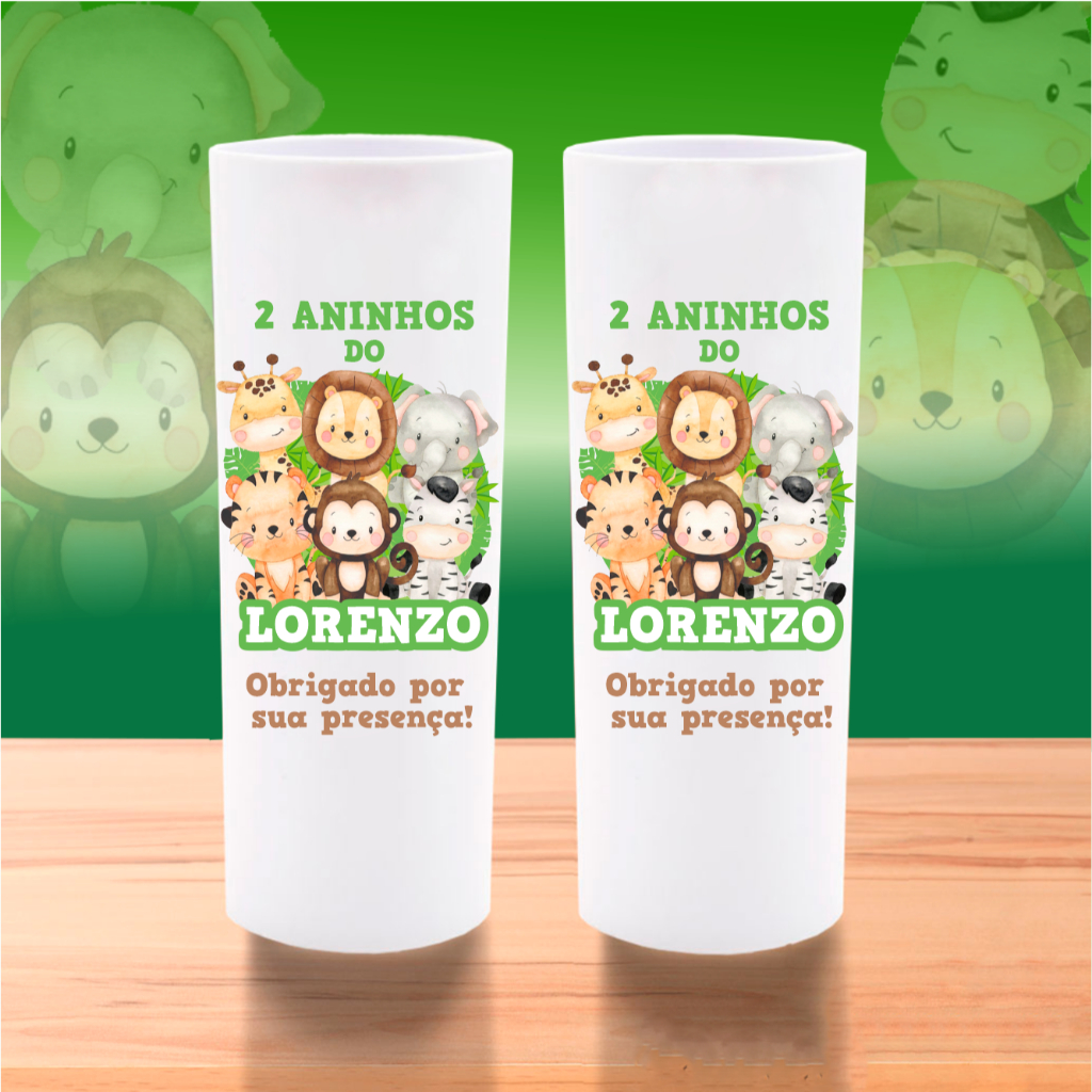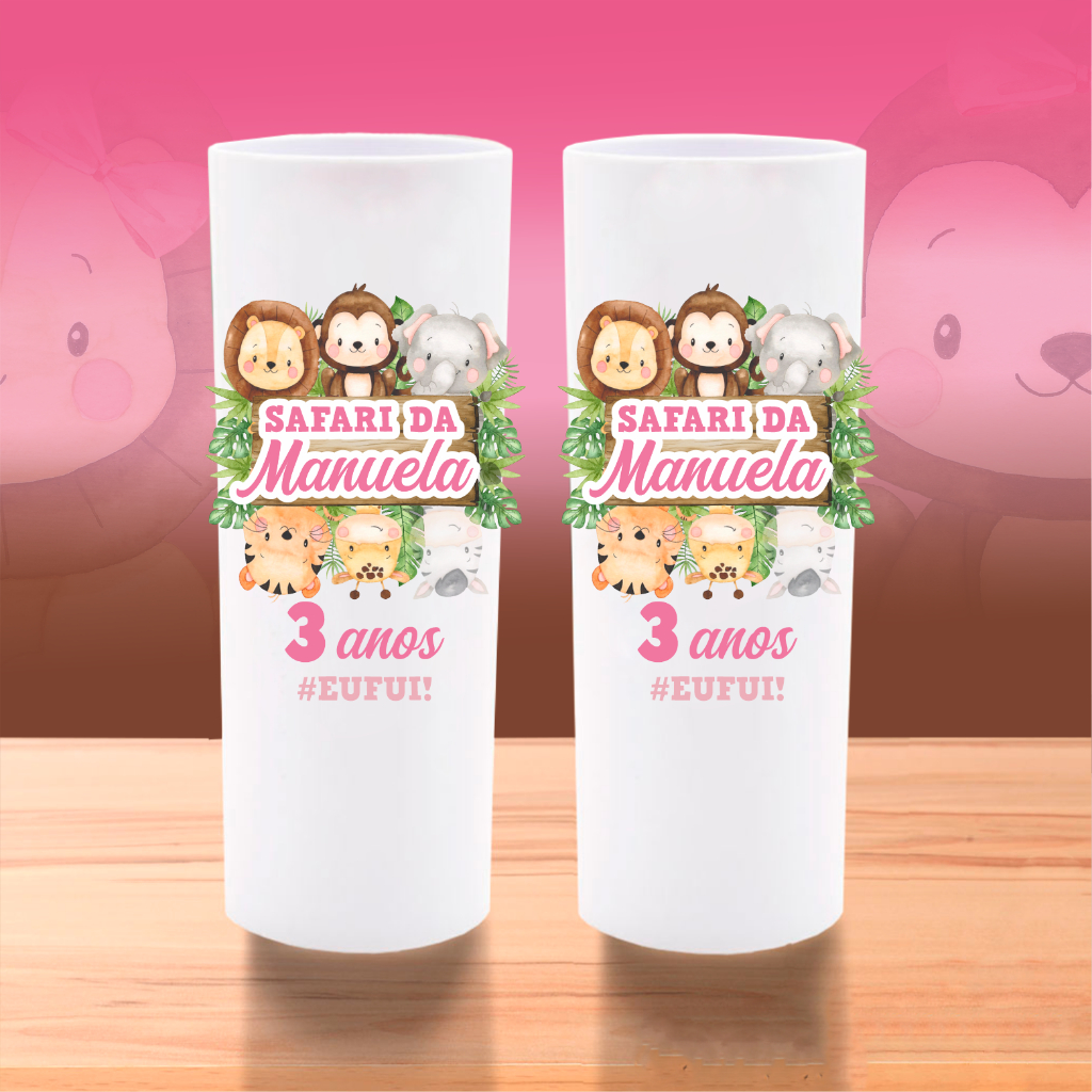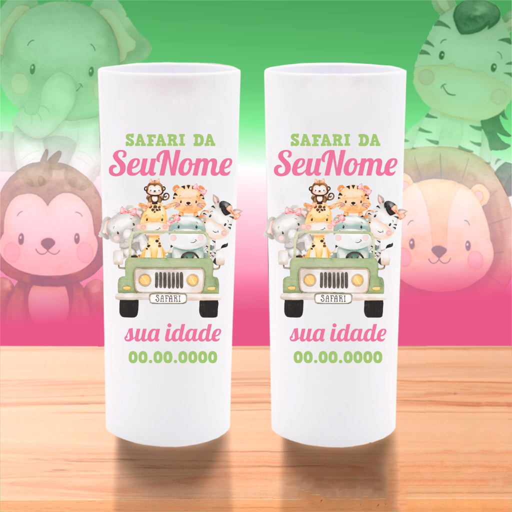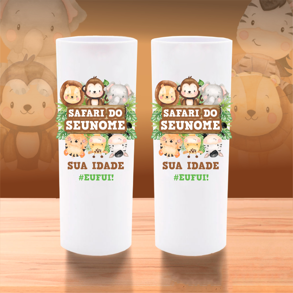 50 Copos Long Drink Safari Personalizados Lembrancinha Safari Aquarela Baby Aniversário Chá de Bebê