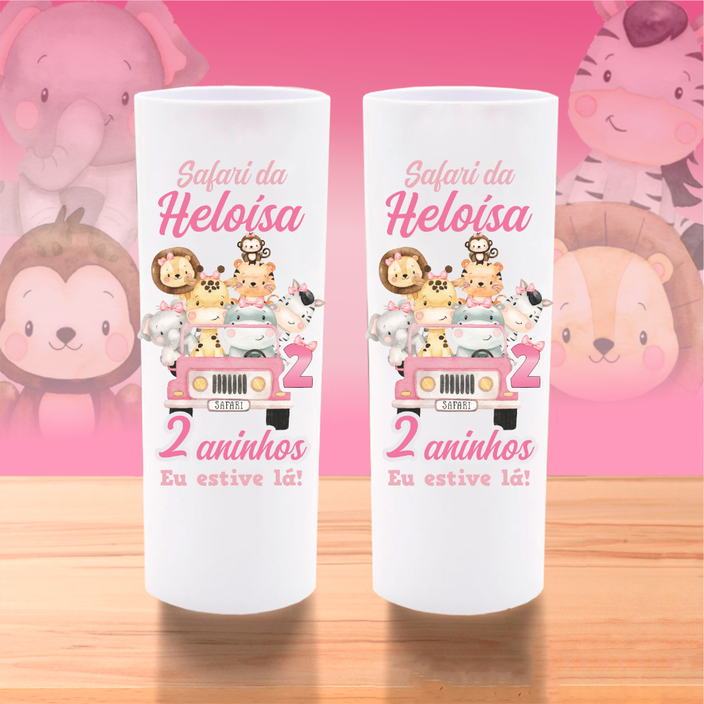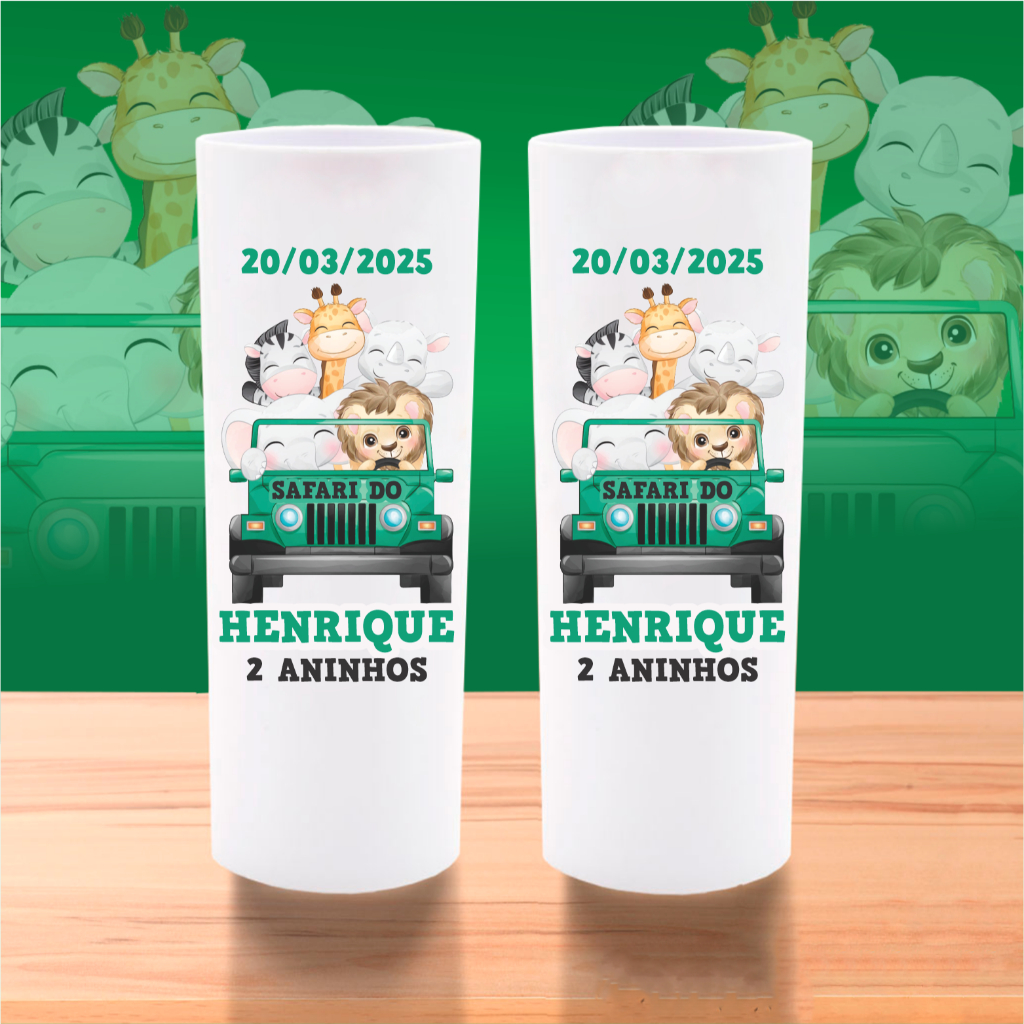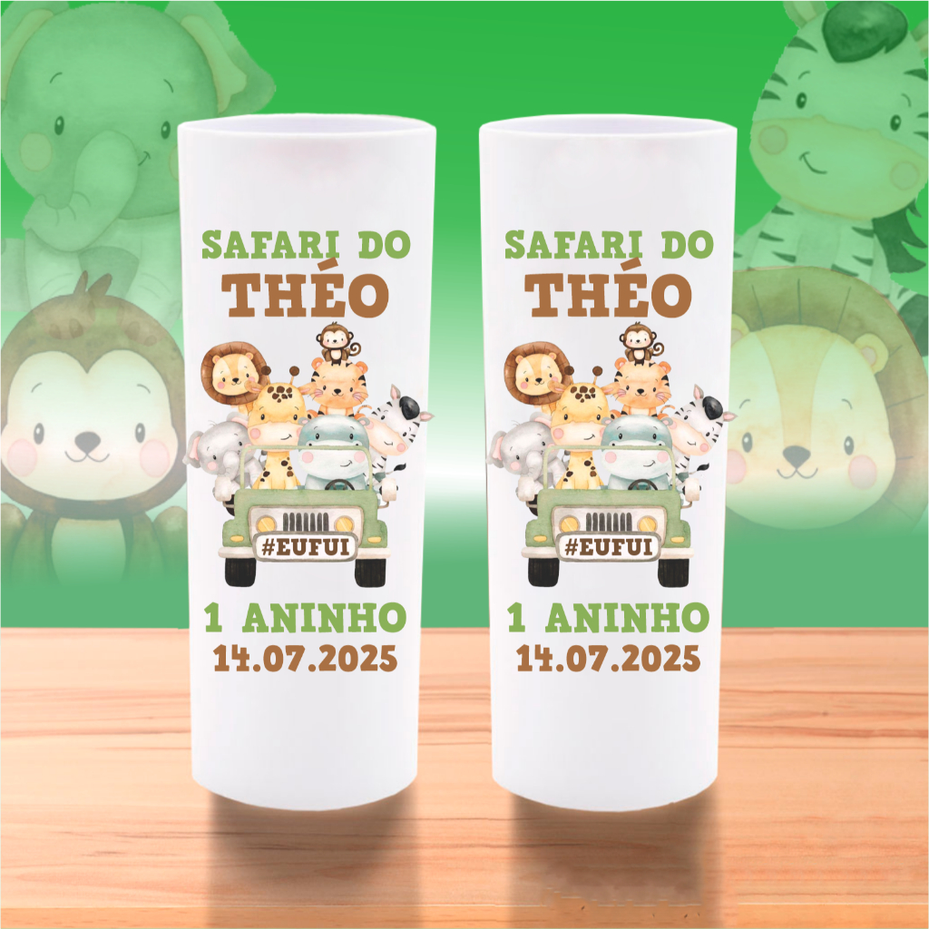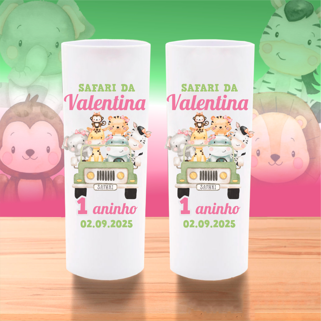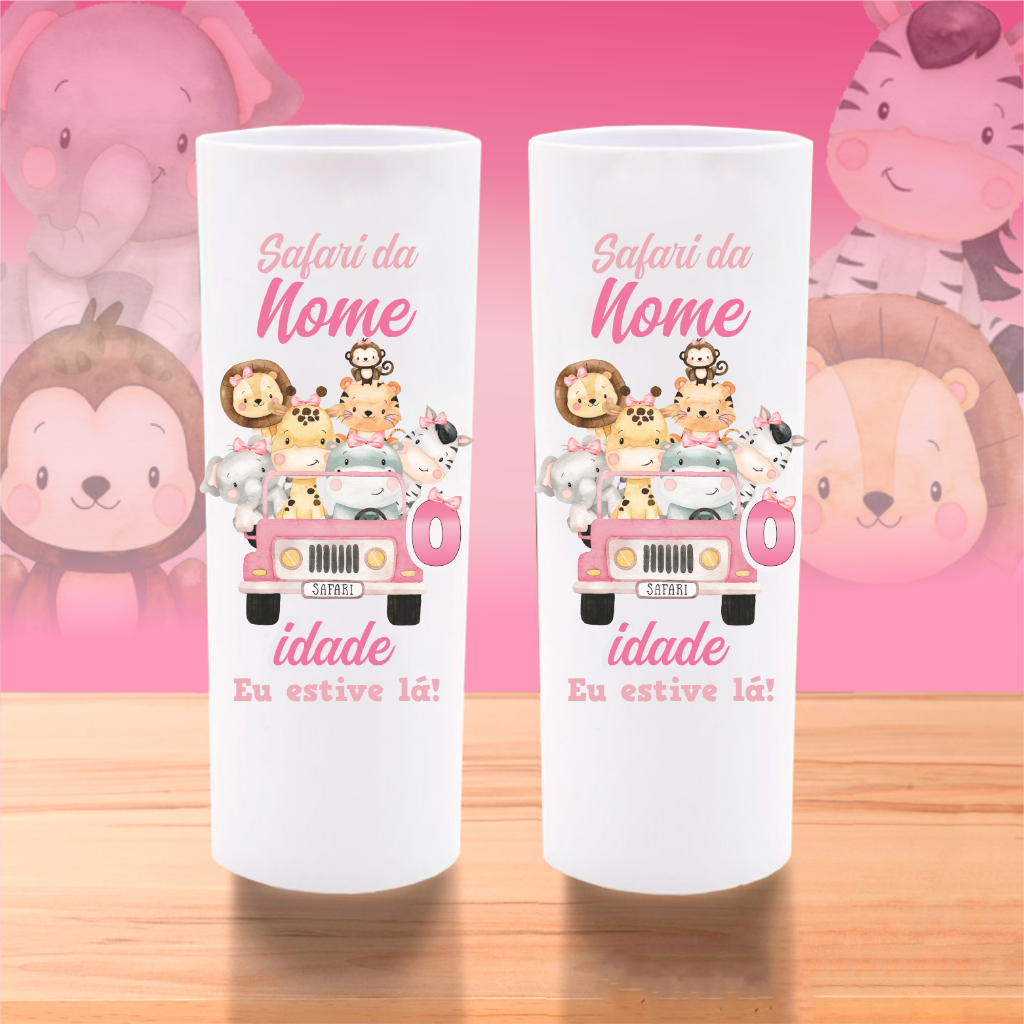 50 Copos Long Drink Safari Personalizados Lembrancinha Safari Aquarela Baby Aniversário Chá de Bebê