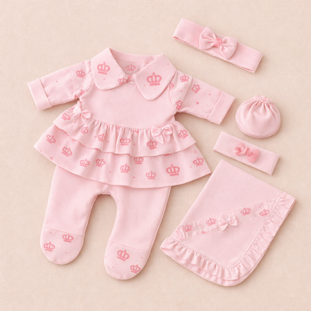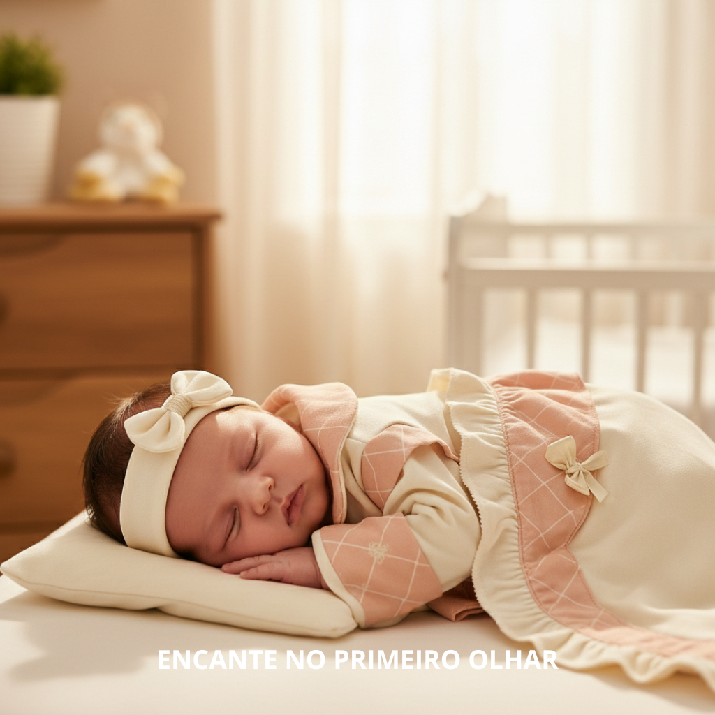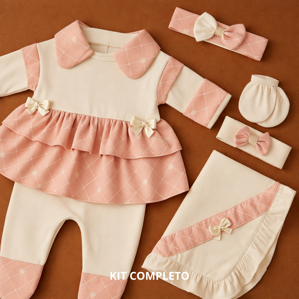 Saída de Maternidade Menina Luxo 5 Peças 100% Algodão Antialérgico