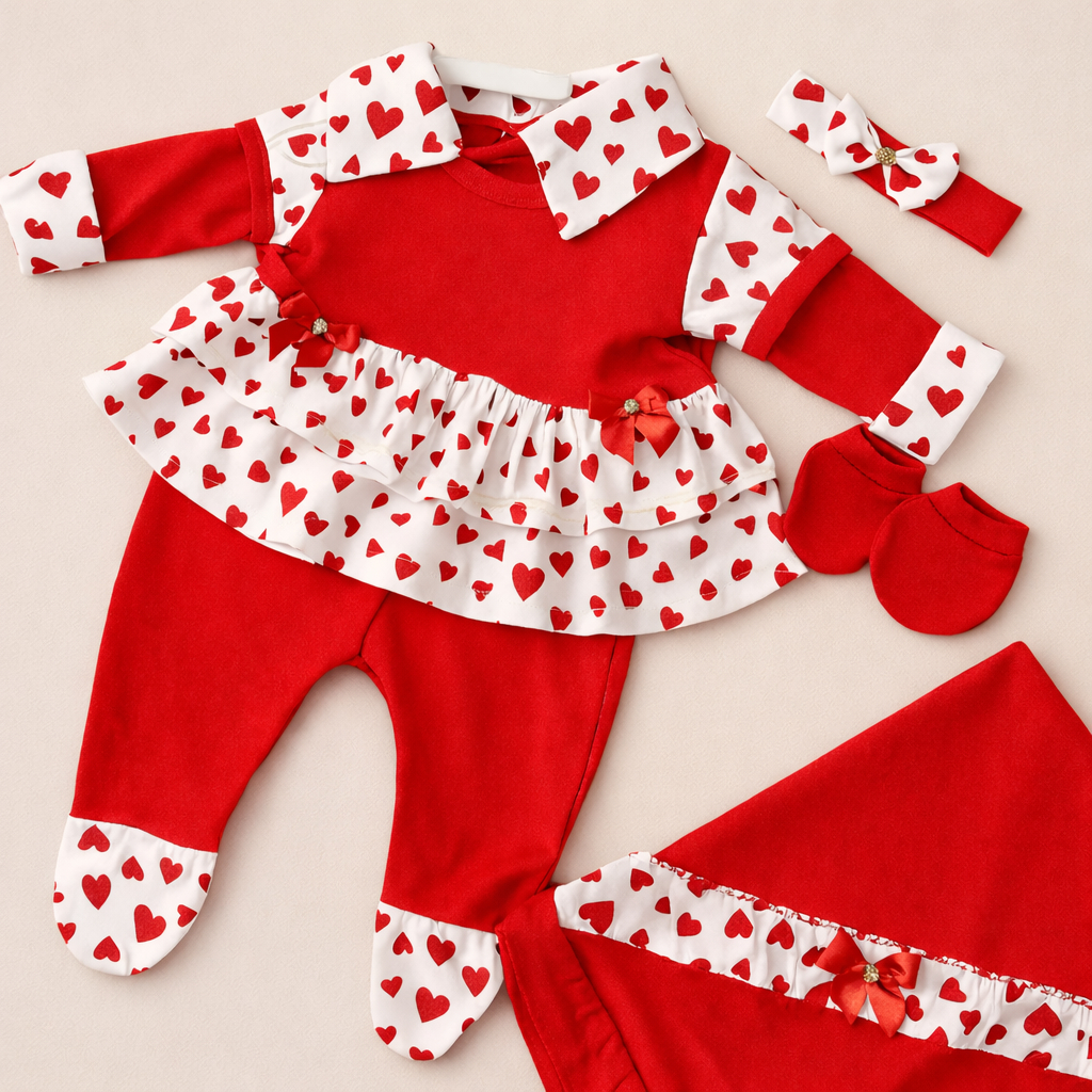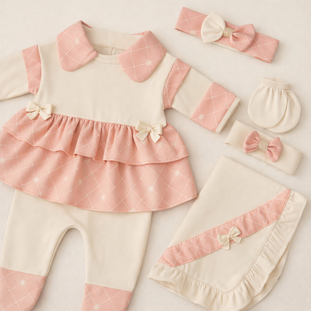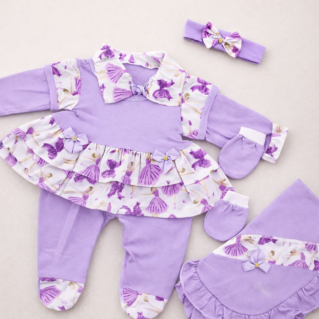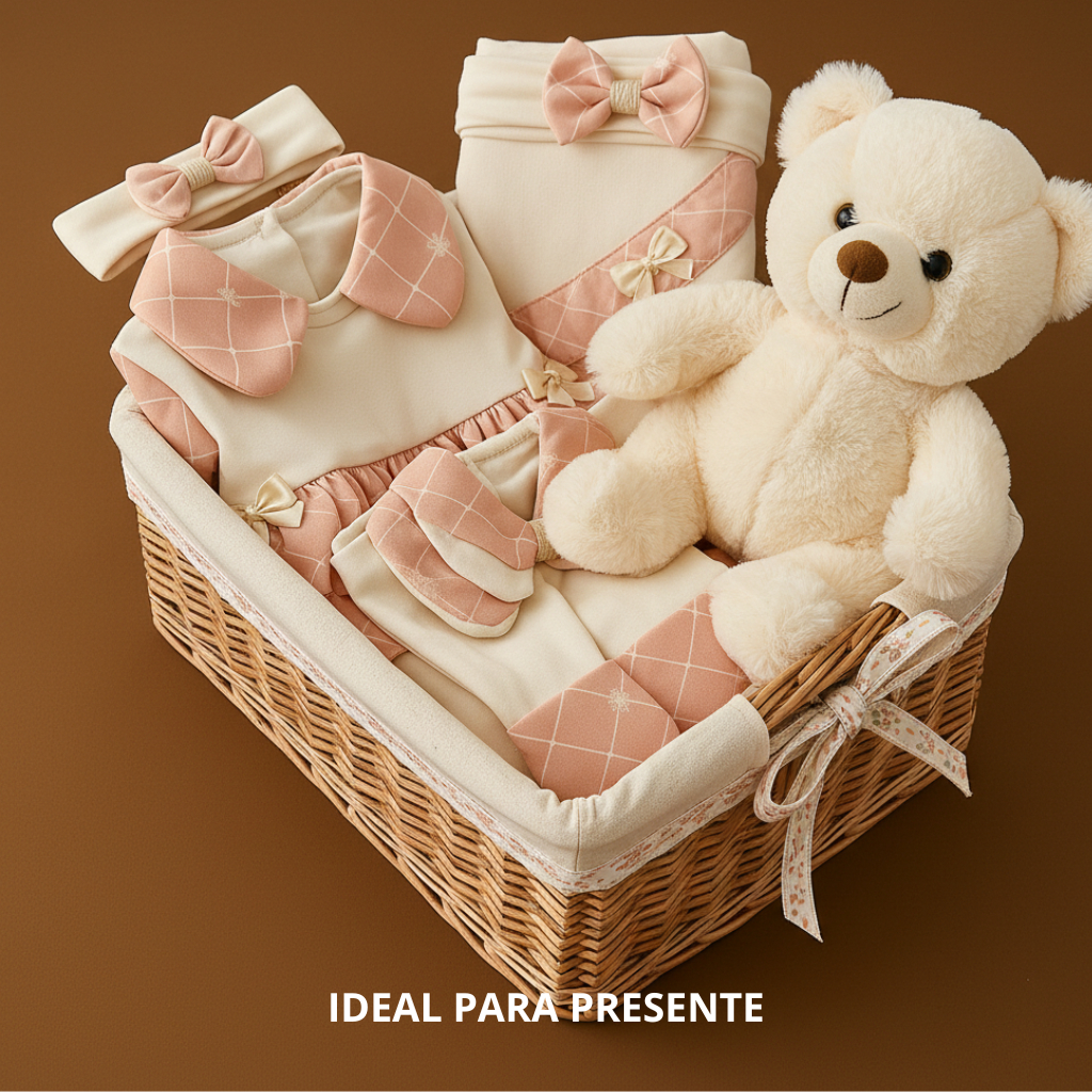 Saída de Maternidade Menina Luxo 5 Peças 100% Algodão Antialérgico