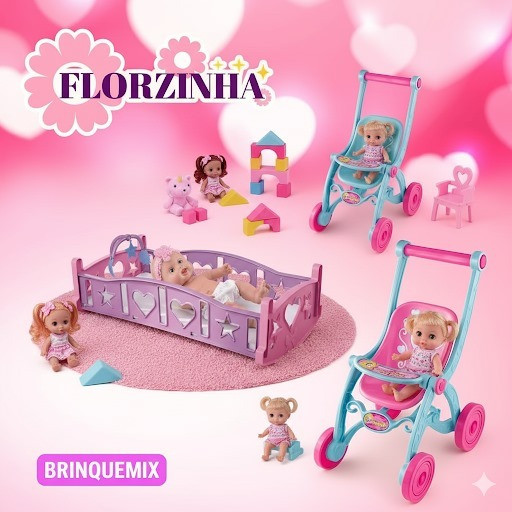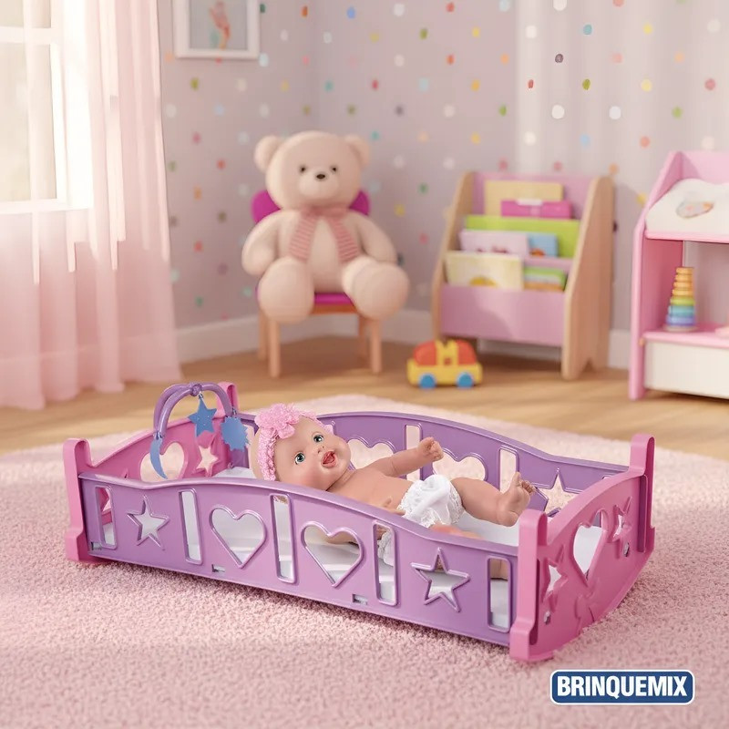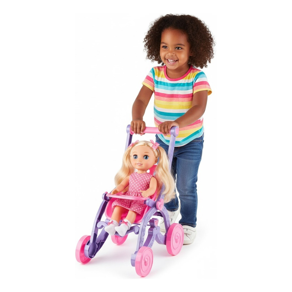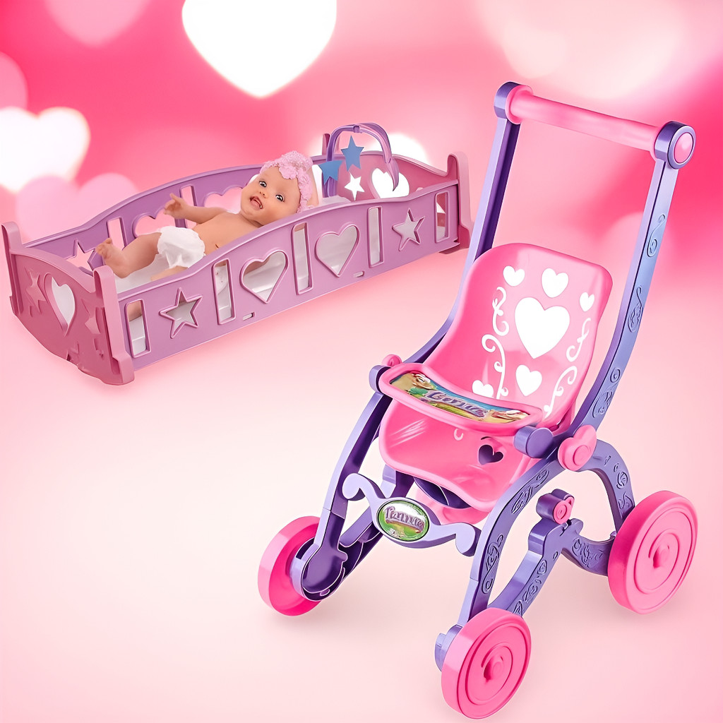 Kit Carrinho + Berço Para Boneca Com Colchão Infantil Fofo Baby Bebê alive Reborn Passeio Bercinho