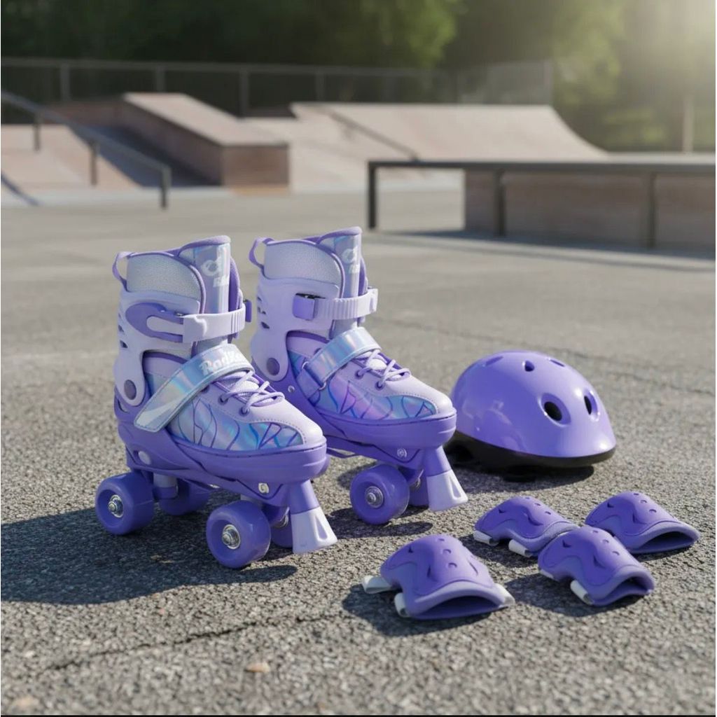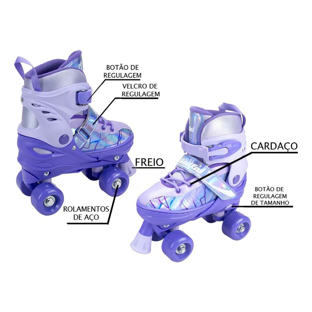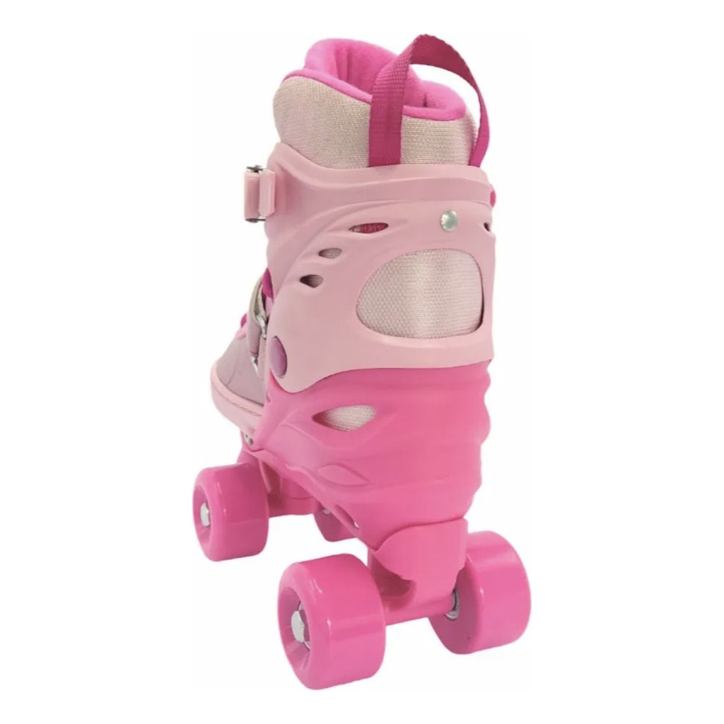 Roller Patins Infantil Rosa 4 Rodas + Kit Proteção Adulto