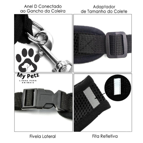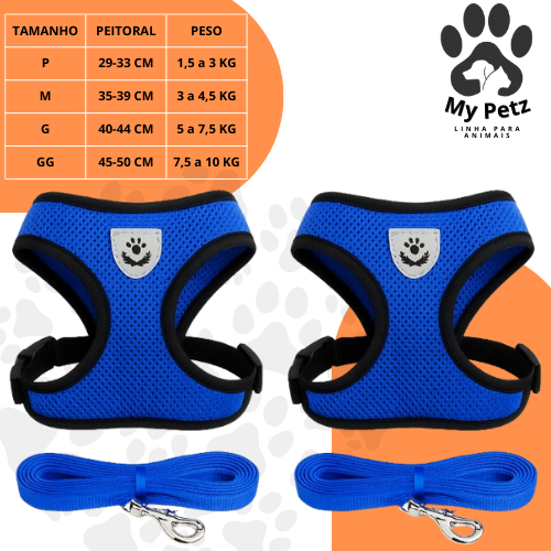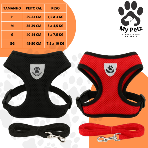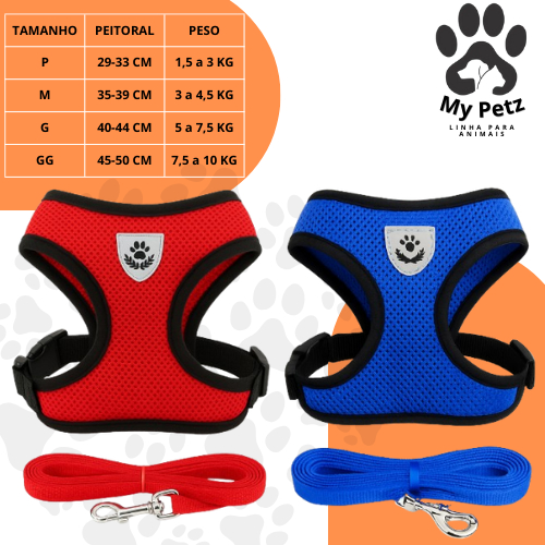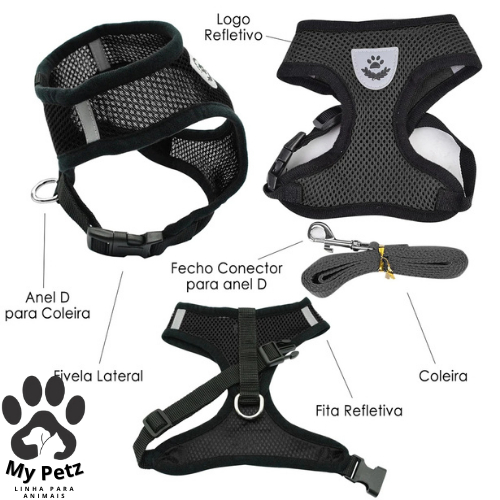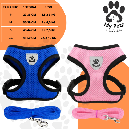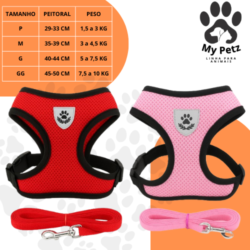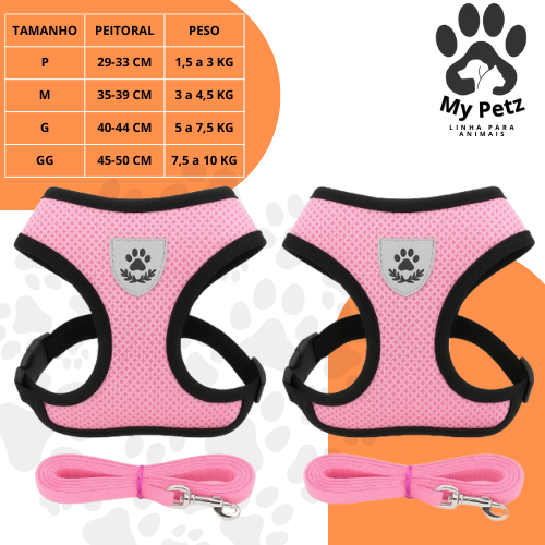 Guia Coleira de Malha Flexível com Colete Peitoral Ajustável para Cão Cachorro Gato Animais