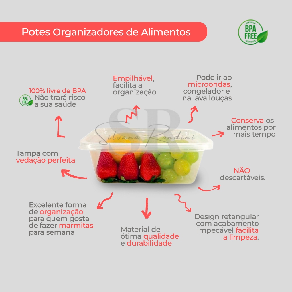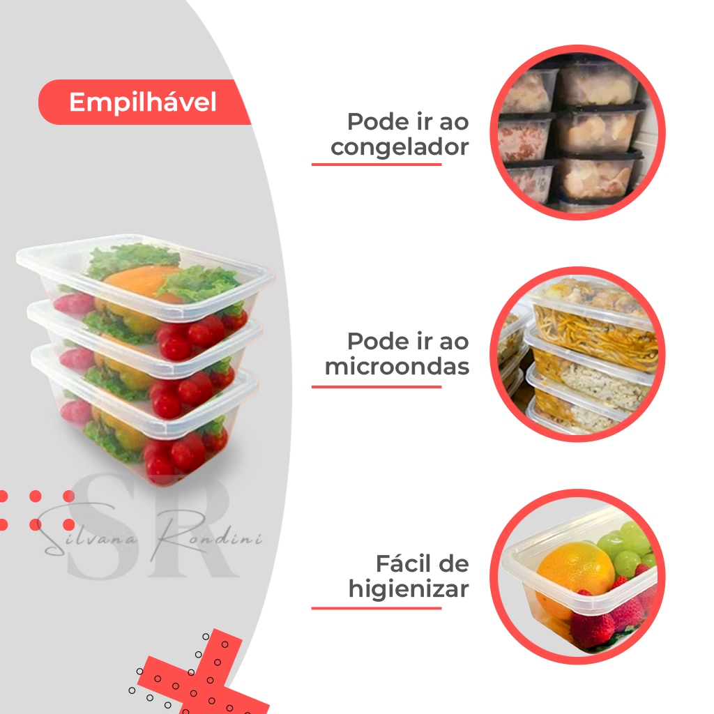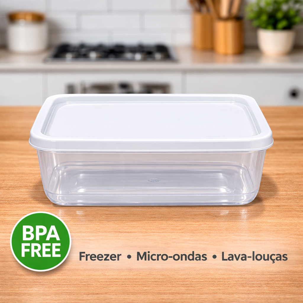 Kit Pote Retangular 5 Unidades 1500ml BPA Free Armazenamento De Alimentos Marmita Congelada